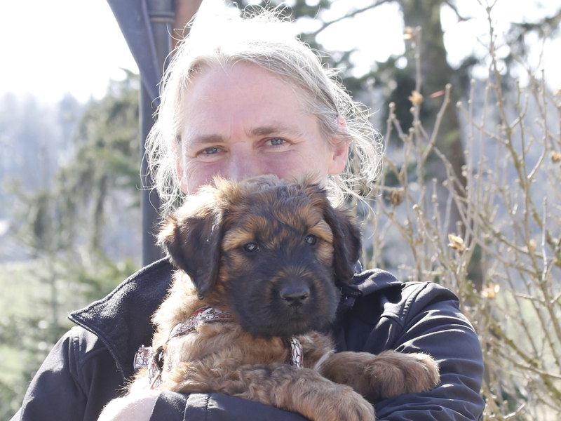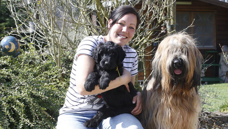 Briardhündin Vala vom Hexenhof bei ihnen. Damit das Team perfekt ist, haben sie sich eine