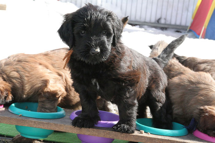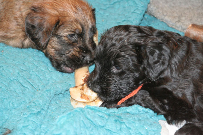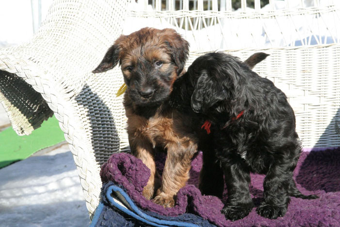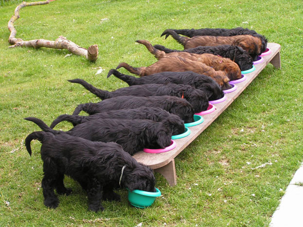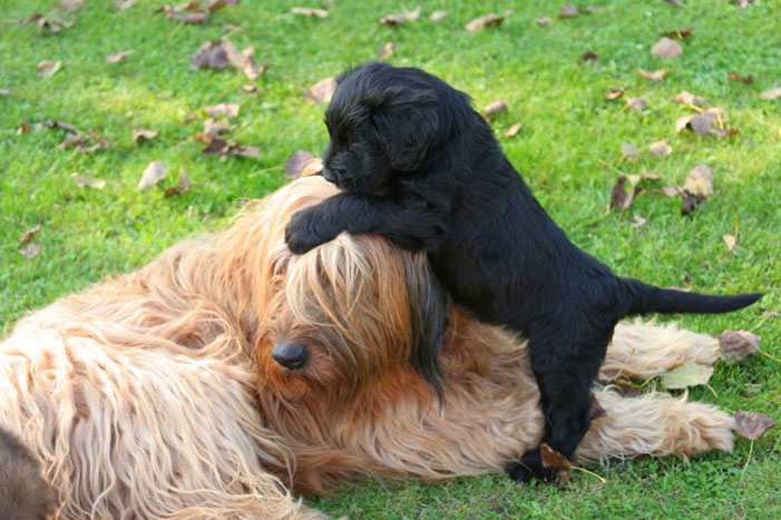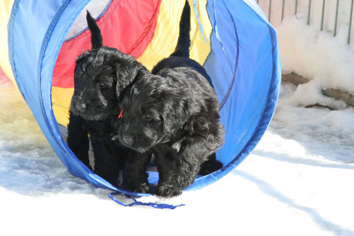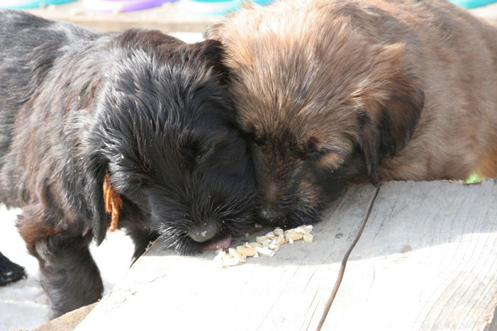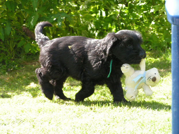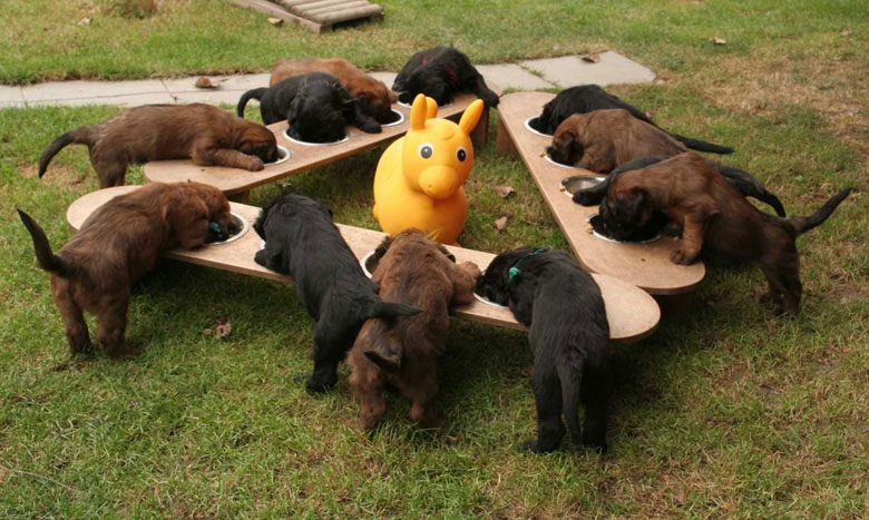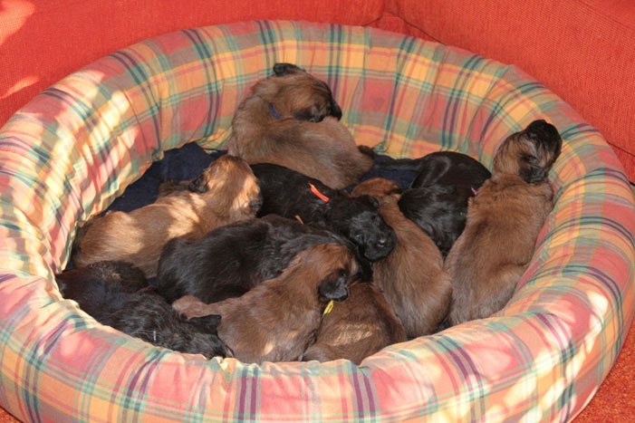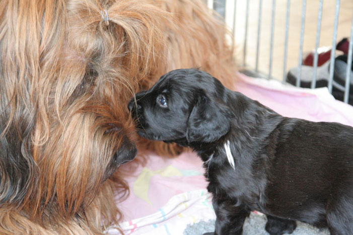 Wenn unsere Hündinnen ihre Welpen haben, bedeutet das acht Wochen positiver Dauerstress für uns. Angefangen von der "Rund-um-die-Uhr-Betreuung" in der ersten Lebenswoche der Welpen, bis acht Wochen später zur Abgabe in ihre sorgfältig ausgesuchten Familien. In der Zwischenzeit dürfen unsere Welpen glücklich unser Leben "umkrempeln". Kein Tag vergeht ohne Spielen, Fressen, Kuscheln und natürlich Lernen. Um hiervon einen Eindruck zu bekommen einfach das entsprechende Vorschaubild anklicken und es erscheint im Großformatdann in einem neuen Fenster.