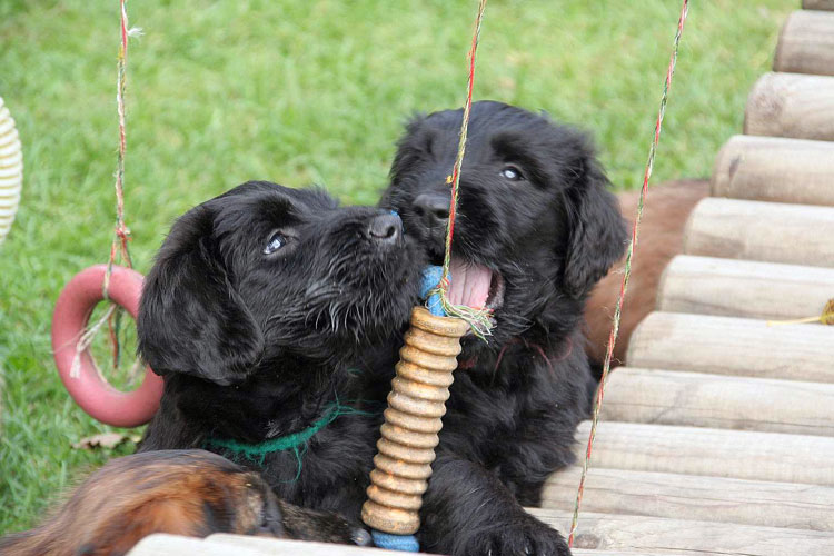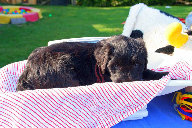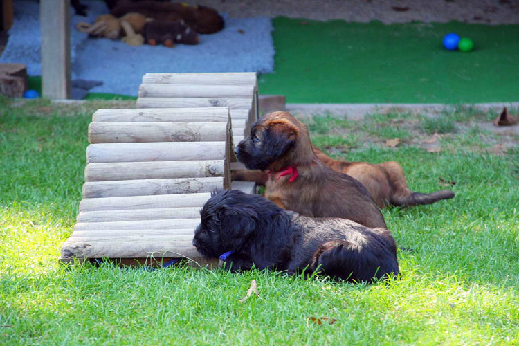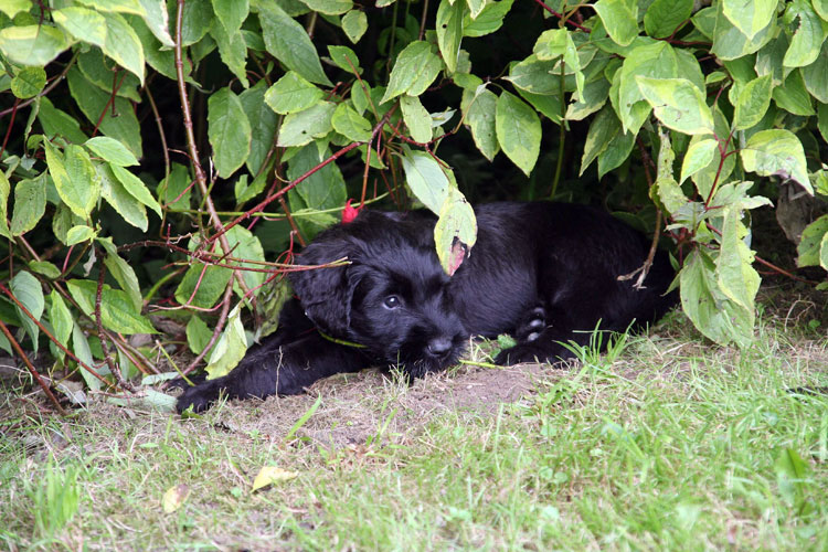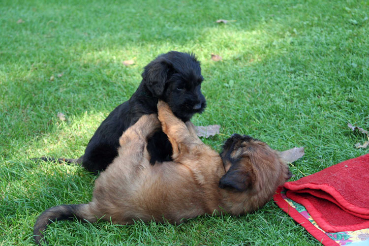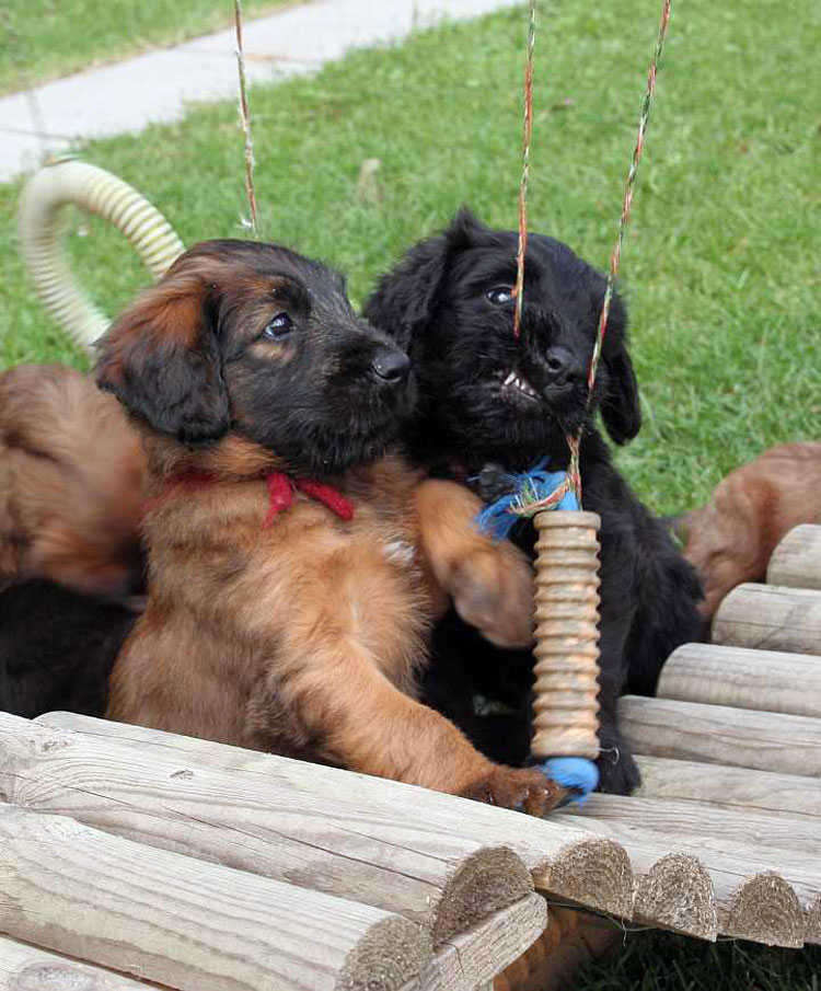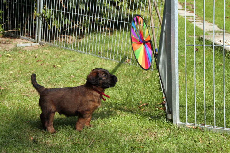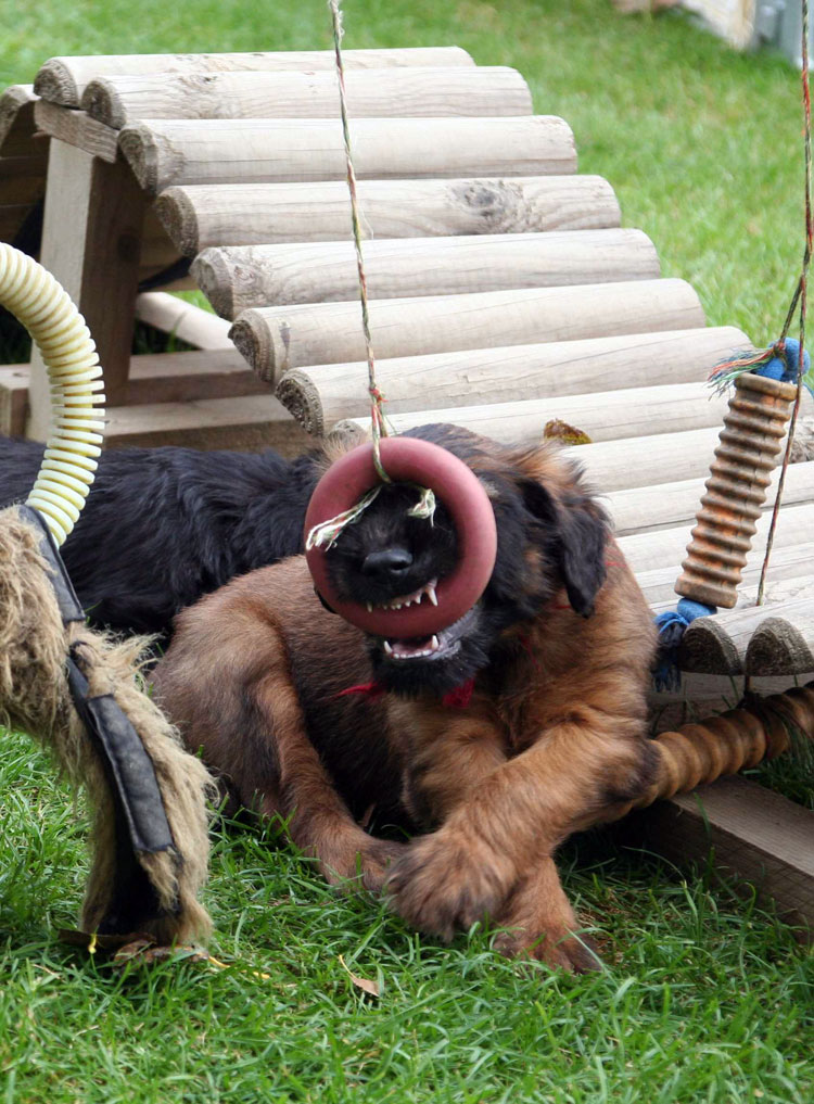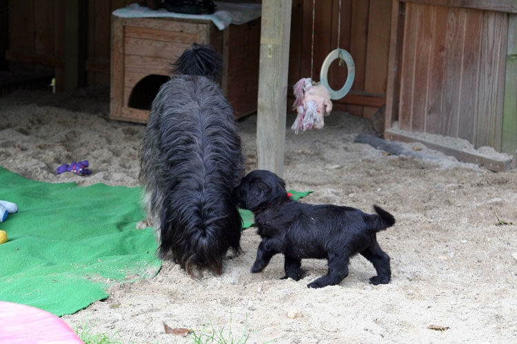 Auch können sie schon blitzschnell zum Türchen Ihres Geheges rasen, sobald sie auch nur ein Laut von uns hören und verlangen dann lautstark, dass wir sie aus ihrem 'Kindergarten' befreien sollen. Schließlich sind sie schon groß und wollen, genau wie unsere anderen Hunde, auch unsere Terrasse und unsere Küche bewohnen.