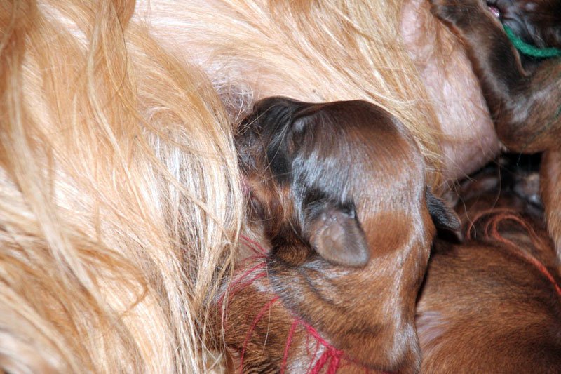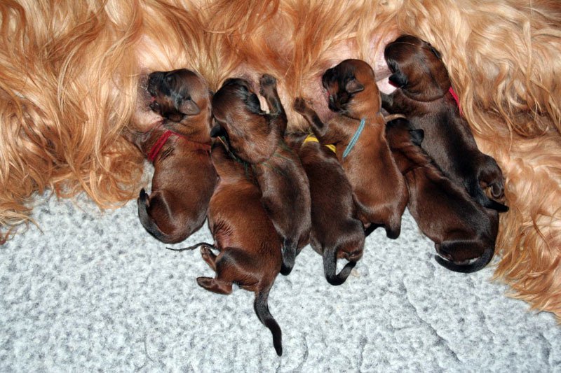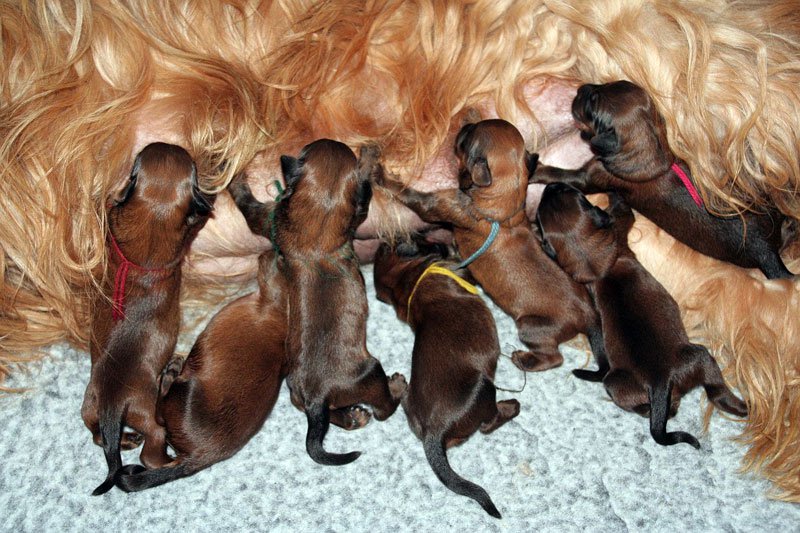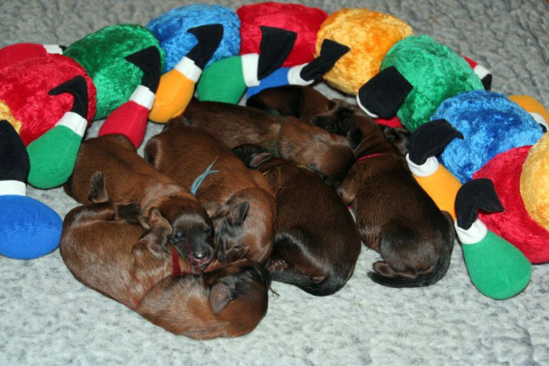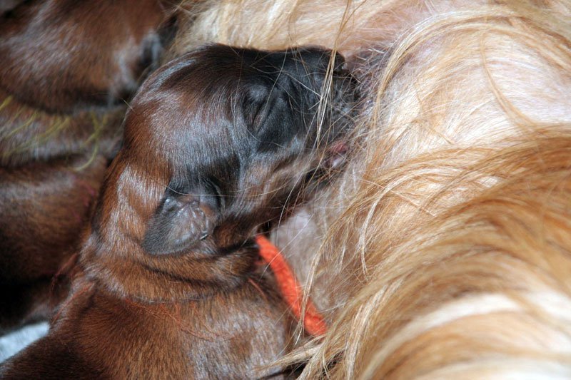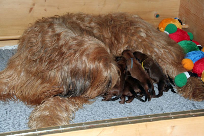 Inschis und Herr Bootsmanns 'P-Hexlein' sind da. Nachdem ich Inschi schon Wochen vor der Geburt 'eingeredet' habe, dass sie auf jeden Fall erst nach meinem Leinenführigkeitsseminar werfen dürfe ... hat sie dann auch noch bis Montag Mittag mit der Geburt gewartet. Sie hat zwar schon am Sonntag abend und in der Nacht dafür gesorgt dass wir nicht so viel Schlaf mitbekommen und schon heftig 'Probe' gehechelt, dann aber noch mal ein Päuschen eingelegt bevor sie endlich ihre Welpen bekommen hat.