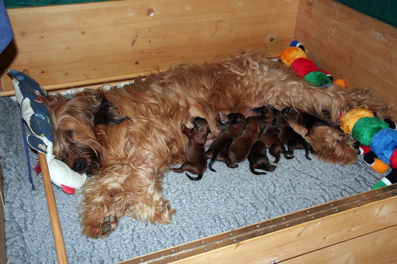 Fünf Hündinnen und zwei Rüden, alle putzmunter und gesund, liegen zufrieden mit Inschi in der Wurfhöhle und bereiten sich darauf vor, alles was unser Gos Wurf zuvor geschafft haben, mindestens genauso gut zu machen. Wir werden wahrscheinlich nach diesem beiden Würfen zumindest Teile unseres Hexengartens neu gestalten dürfen. Hat ja auch was, so eine Rundumerneuerung.