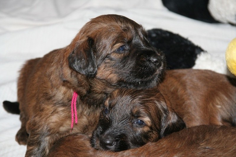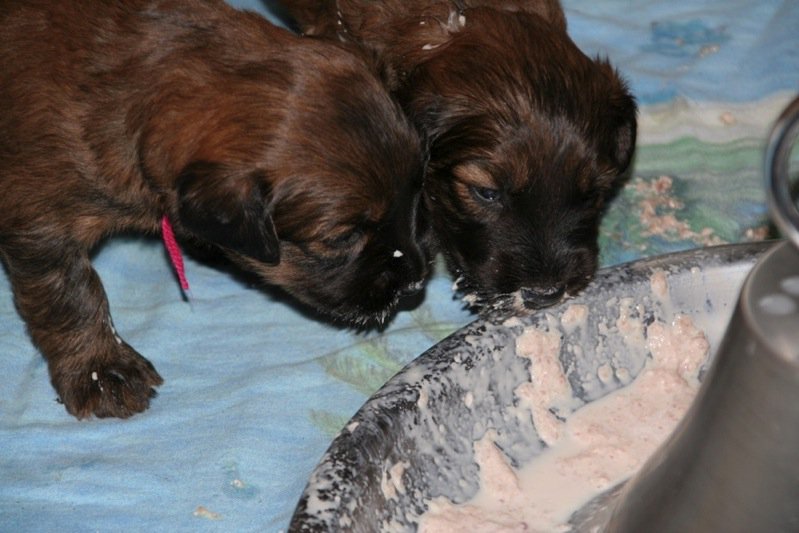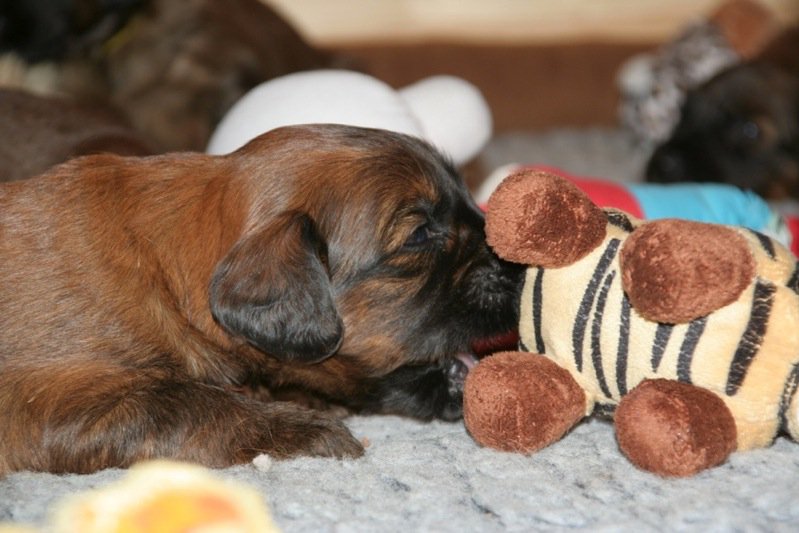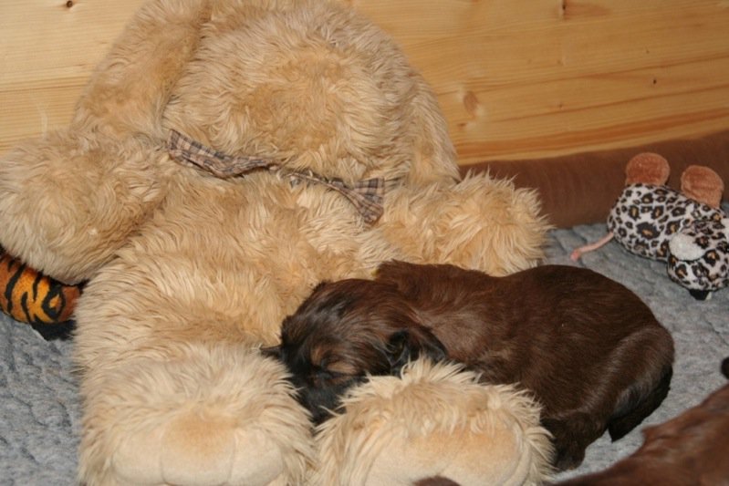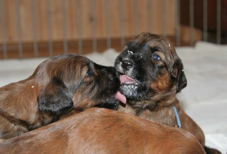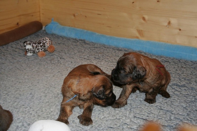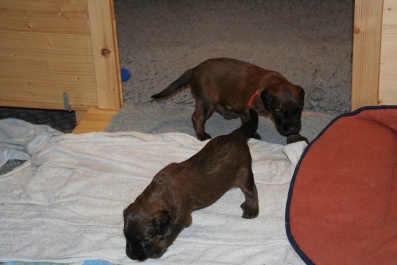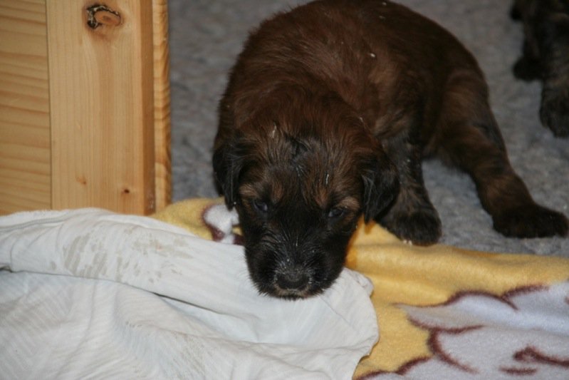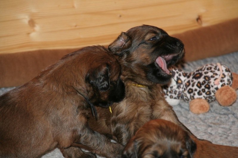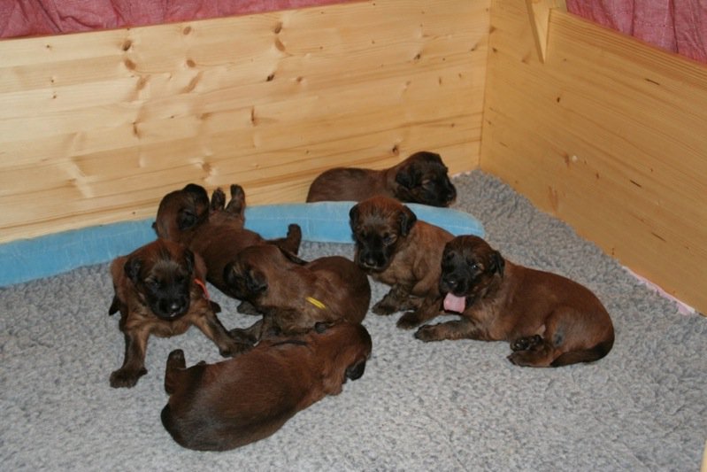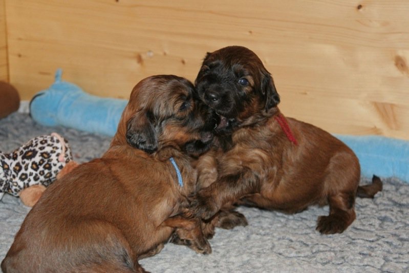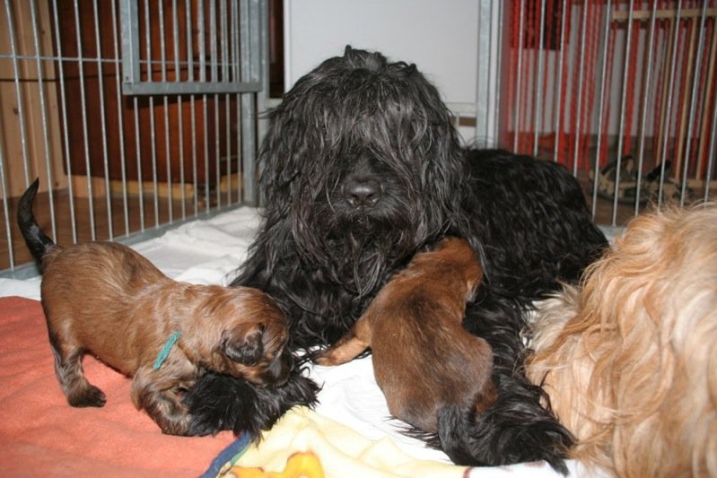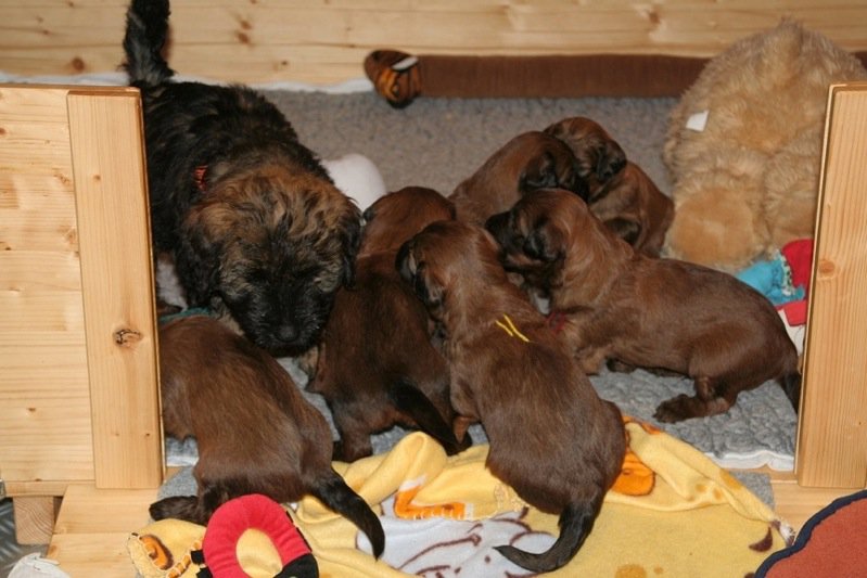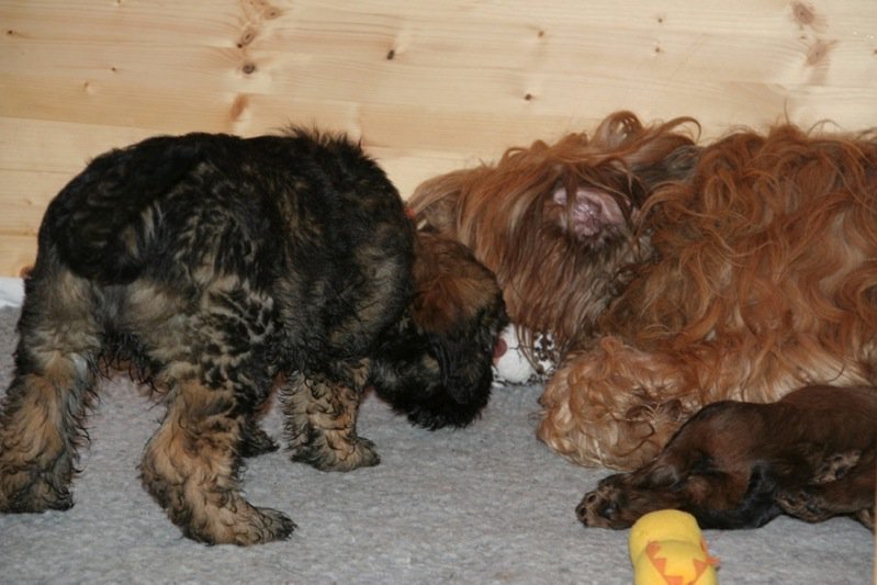 So langsam bricht auch bei unseren Briards der Wille zu mehr Aktion aus ... jedenfalls haben sie schon richtige Spielminuten, manchmal allerdings auch nur Sekunden! Den Besuch von unseren Rudelmitgliedern finden sie schon recht spannend ... und auch unsere erwachsenen Hexlein gehen gerne mal 'auf einen kleinen Plausch' zu ihnen.