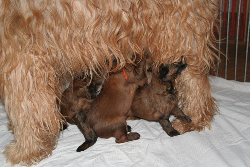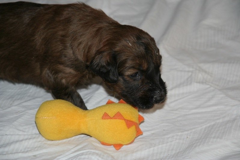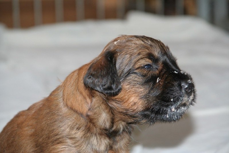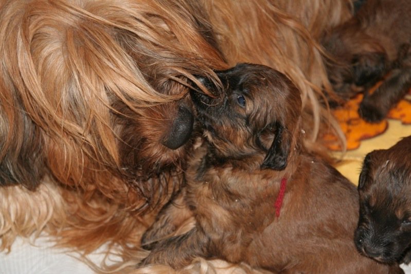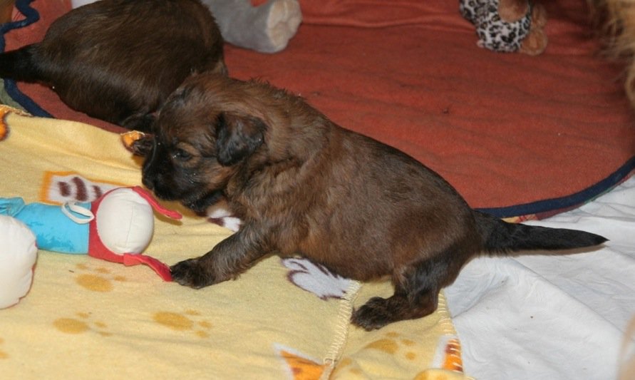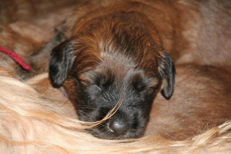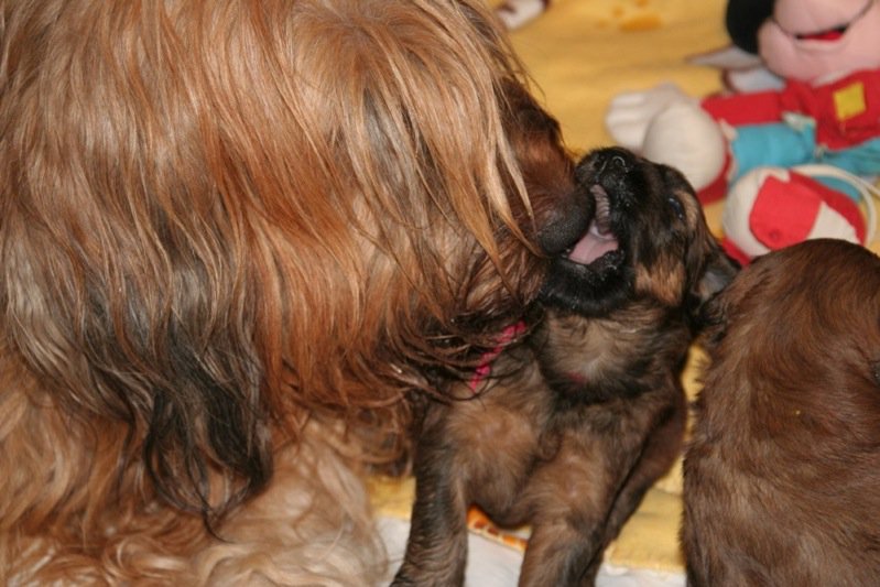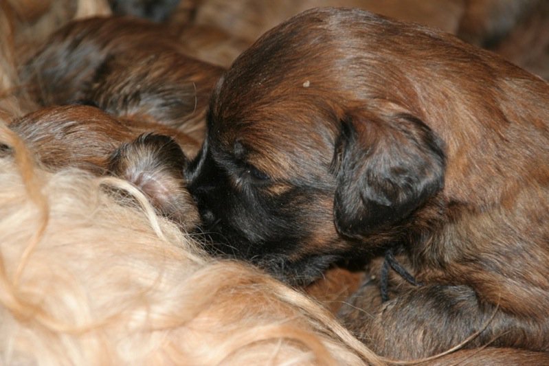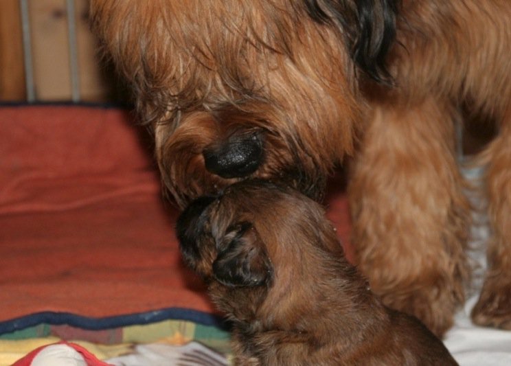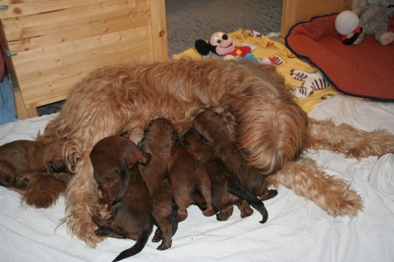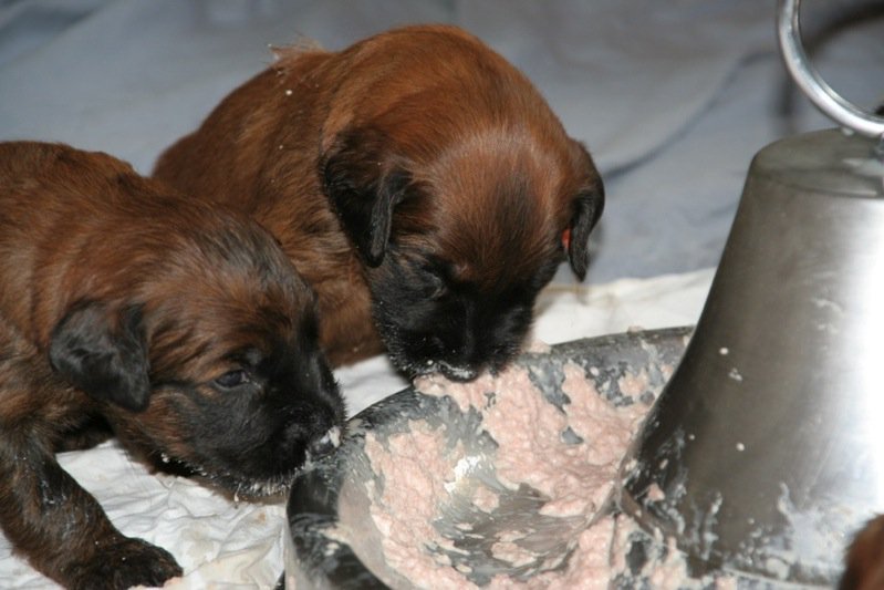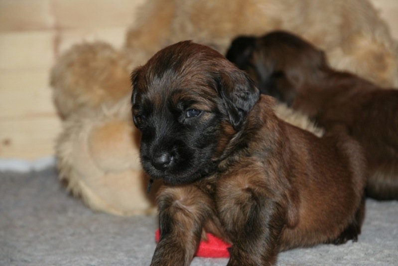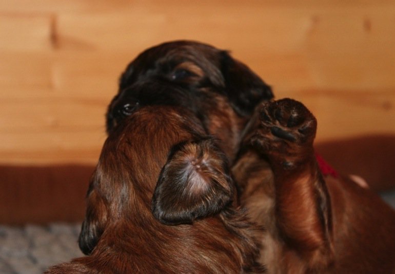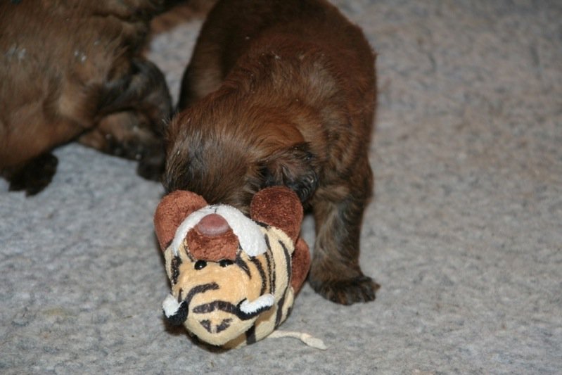 So langsam bricht auch bei unseren Briards der Wille zu mehr Aktion aus ... jedenfalls haben sie schon richtige Spielminuten, manchmal allerdings auch nur Sekunden! Den Besuch von unseren Rudelmitgliedern finden sie schon recht spannend ... und auch unsere erwachsenen Hexlein gehen gerne mal 'auf einen kleinen Plausch' zu ihnen.