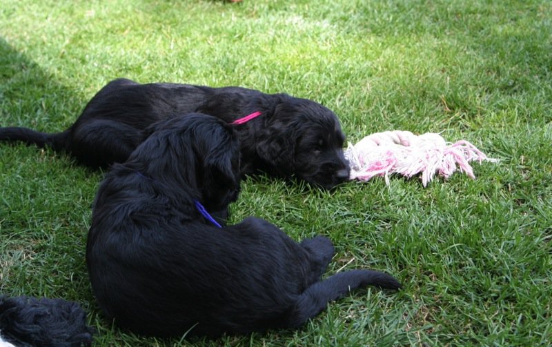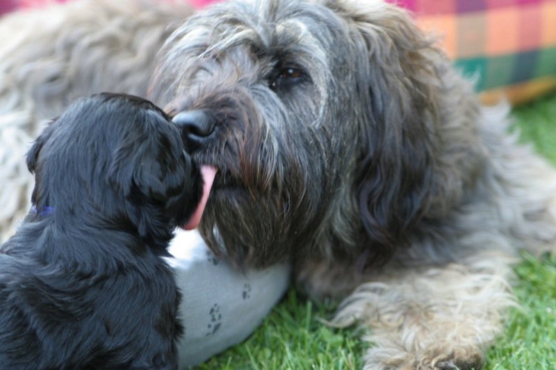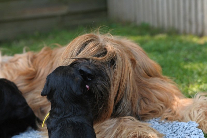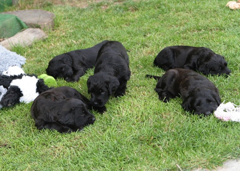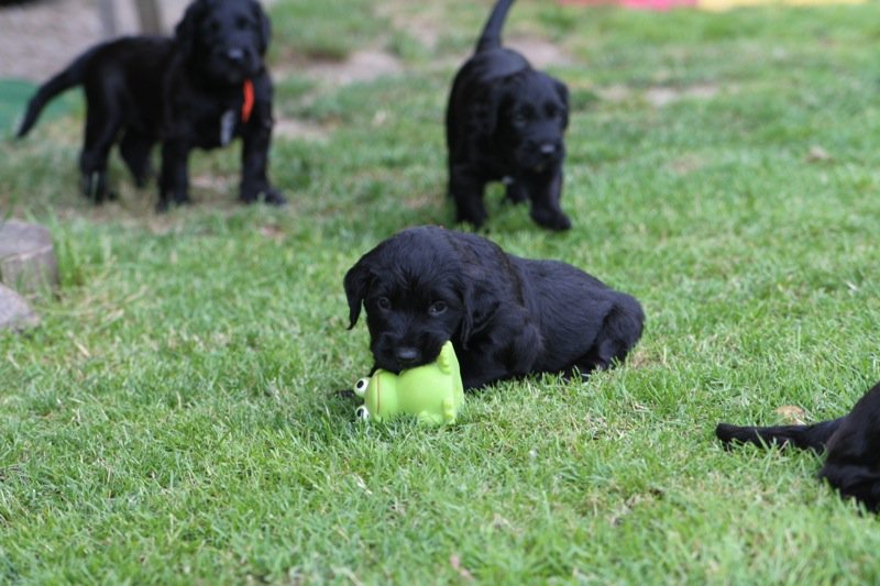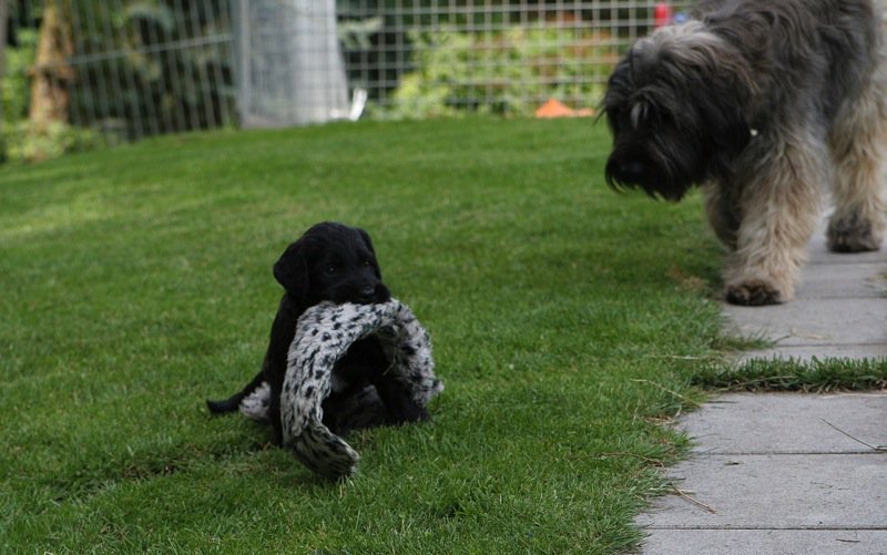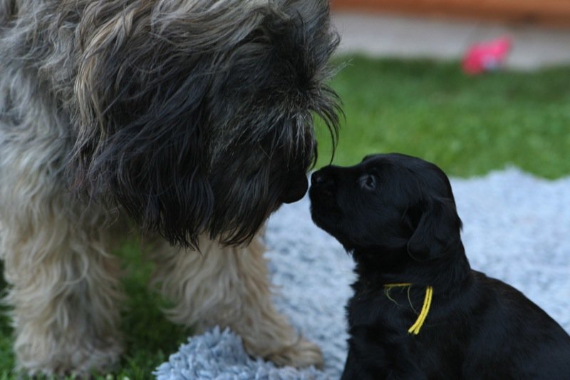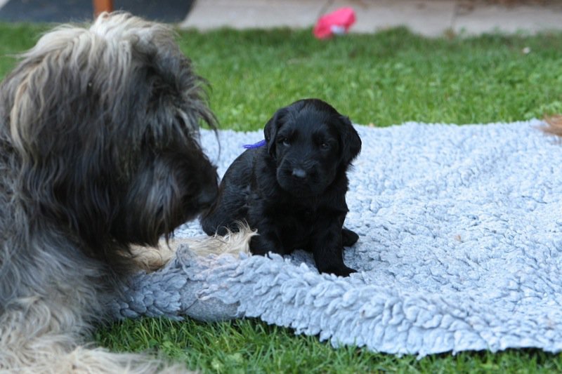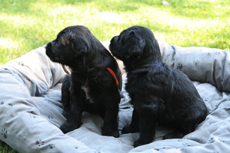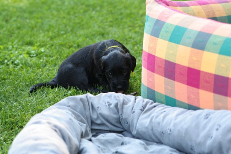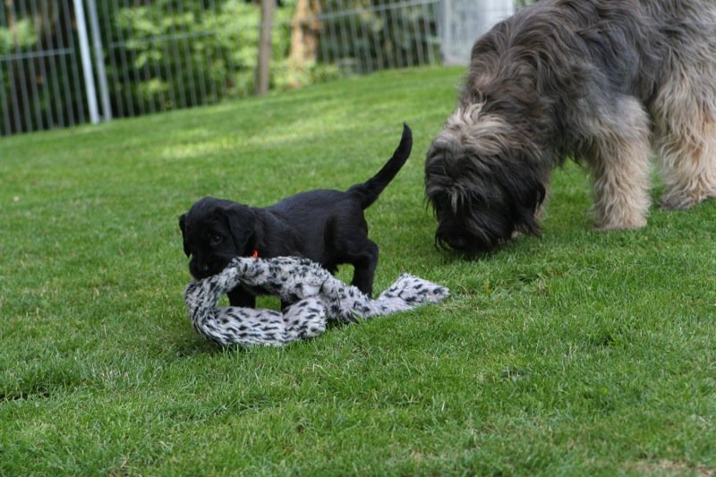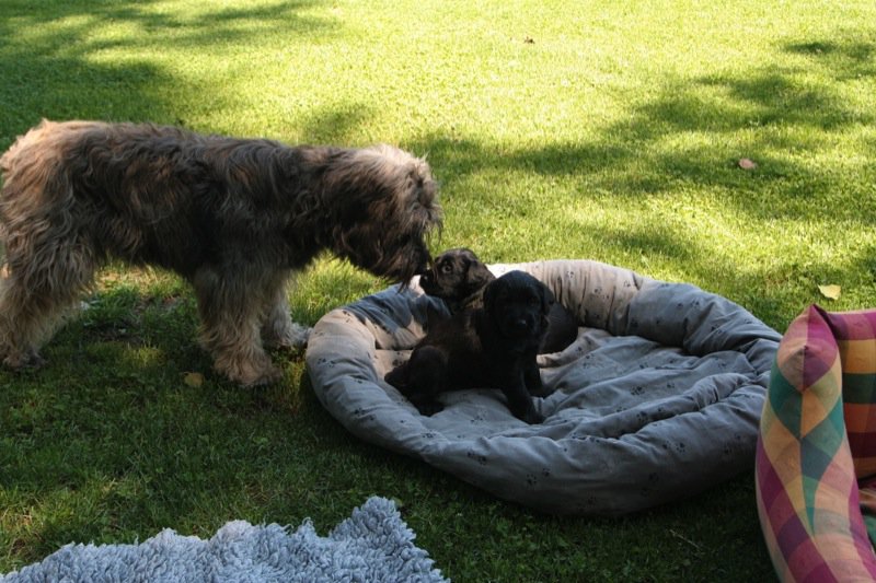 Halbzeit ... unsere Hexlein sind nun vier Wochen jung und bereit große Abenteuer zu erleben. Tagsüber sind sie schon in ihrer Villa mit Garten. Tapfer haben sie das erste Gras gefressen, die ersten Regentropfen getrunken, Ameisen aus dem Fell gezupft, unser Rudel verbellt, Besucher angenagt, Sand probiert und quietschvergnügt Mara und Cobold geärgert.
