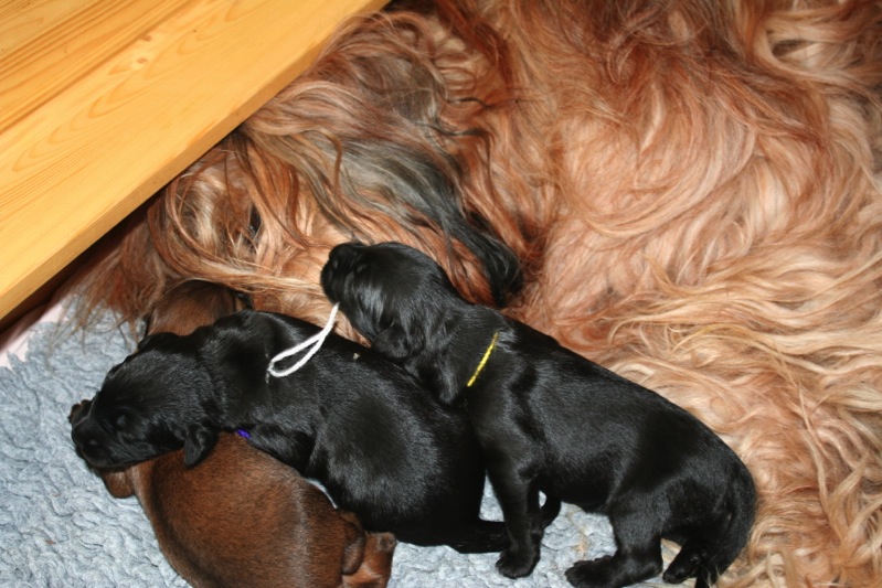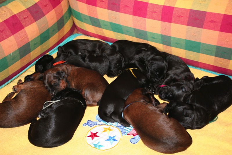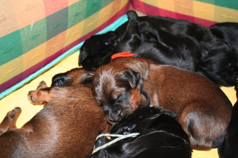 Nun sind unsere Babys schon eine Woche alt und fangen langsam an, in ihrer Kiste herumzukrabbeln. Dann hört frau schon ab und an einen verzweifelten Hilfequietscher, wenn sich eins der Kleinen in einer Ecke 'festgefahren' hat, denn einen Rückwertsgang haben sie noch nicht.