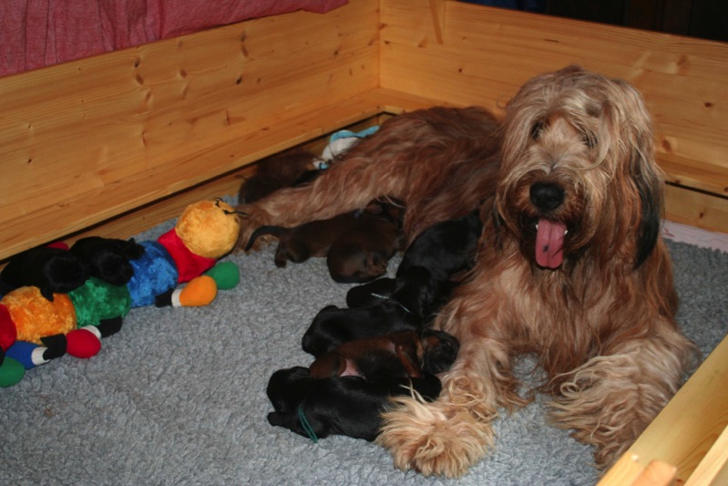 In der ersten Woche haben die Kleinen schon fast alle ihr Geburtsgewicht verdoppelt und sind richtige Wonneproppen geworden. Sie robben durch die Kiste und wenn sie Hunger verspüren, reicht ein kleiner Quietschton und Onawa öffnet die Milchbar. Das ist ein Leben!