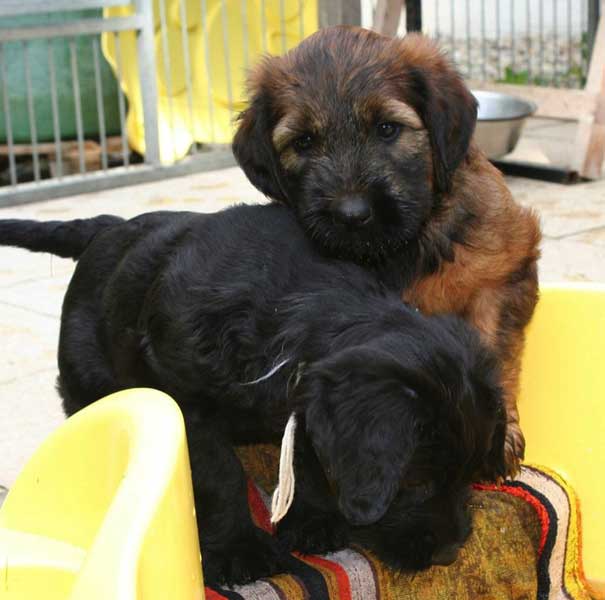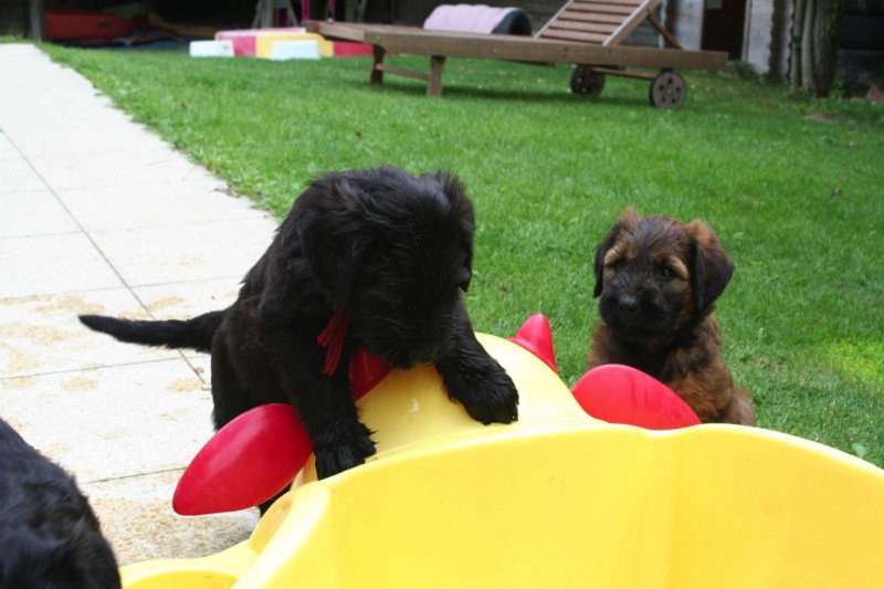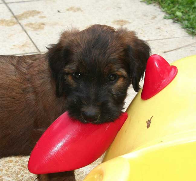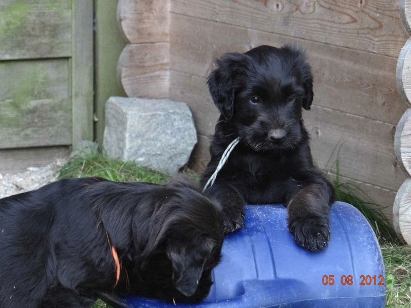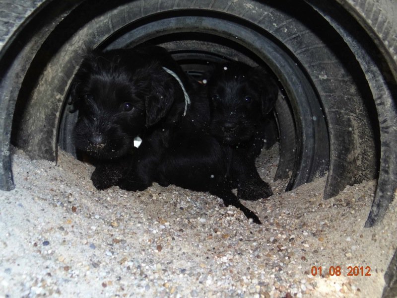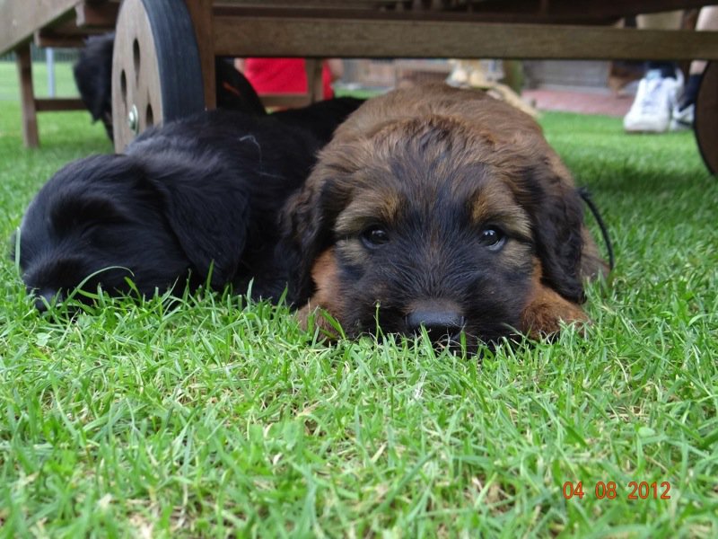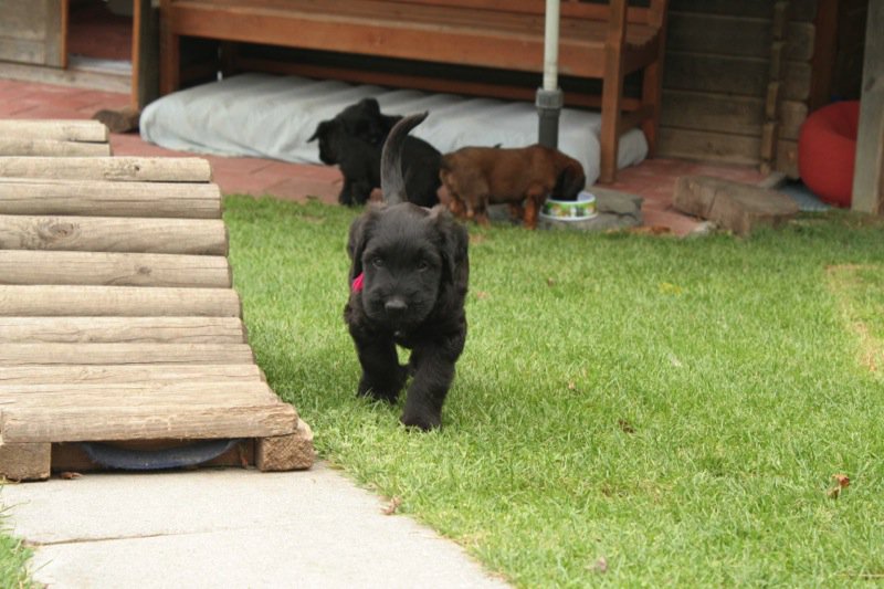 Die Hexen sind los ... nun ist es endlich geschafft, die große weite Welt steht ihnen zur Verfügung. Sie haben ihren neuen Wirkungskreis (ihren Hexendschungel) komplett in Beschlag genommen. Mit der Konsequenz, dass etliche der kleinen Essigbäume und Sträucher sich endgültig verabschiedet haben, unsere Terrasse zu ihrem Lieblingsspielplatz geworden ist, das tolle Welpenhaus nur noch zum 'durchrennen' benutzt wird da sie nun fröhlich draußen schlafen und ihre 'Nordsee' doch nur eine Kinderplanschbecken ist.