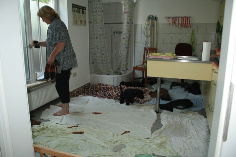 Nach einer letzten erlebnisreichen Woche waren sie startklar für ihr neues Leben. Ihre Familien haben schon sehnsüchtig auf ihren Einzug gewartet und wir uns dagegen uns ein wenig vor diesem 'schwarzem Loch' gefürchtet, in das wir nach acht Wochen Welpenaufzucht immer wieder fallen. Nichts desto trotz haben wir sie gerne in ihre Familien entlassen. Fast alle zehn Familien kennen wir glücklicherweise schon lange. Viele, viele Besuche bei uns haben uns das gute Gefühl gegeben, die richtigen Hexlein für die richtigen Familien ausgesucht zu haben.