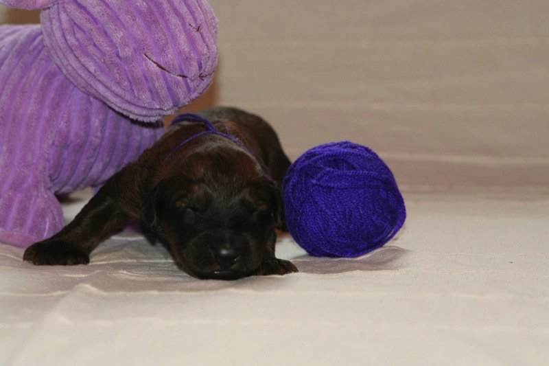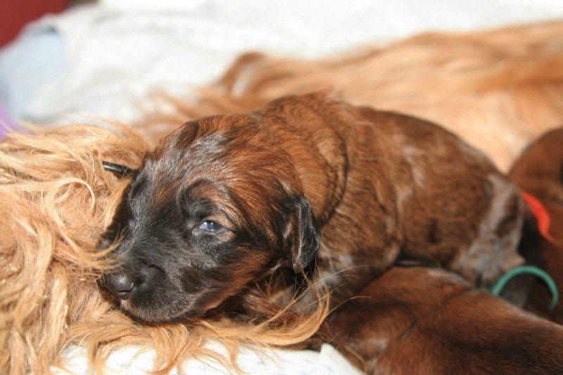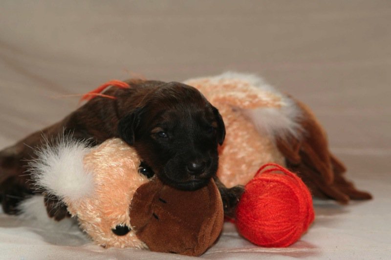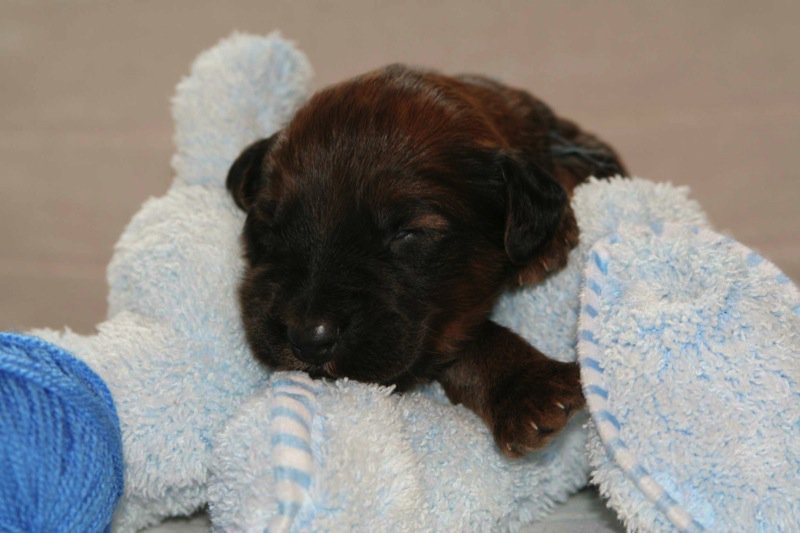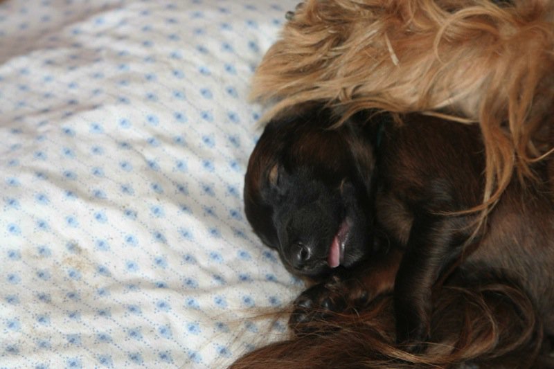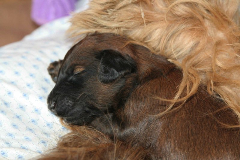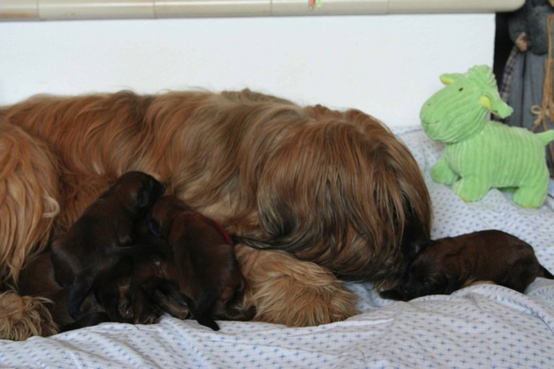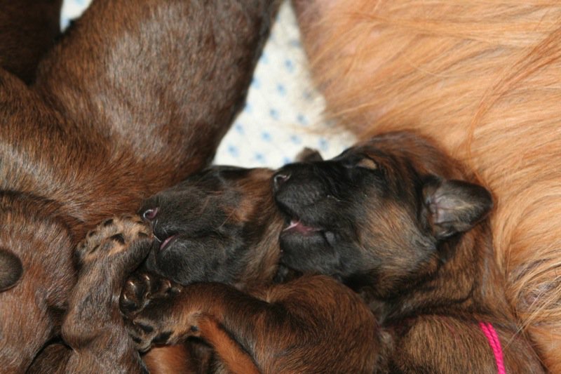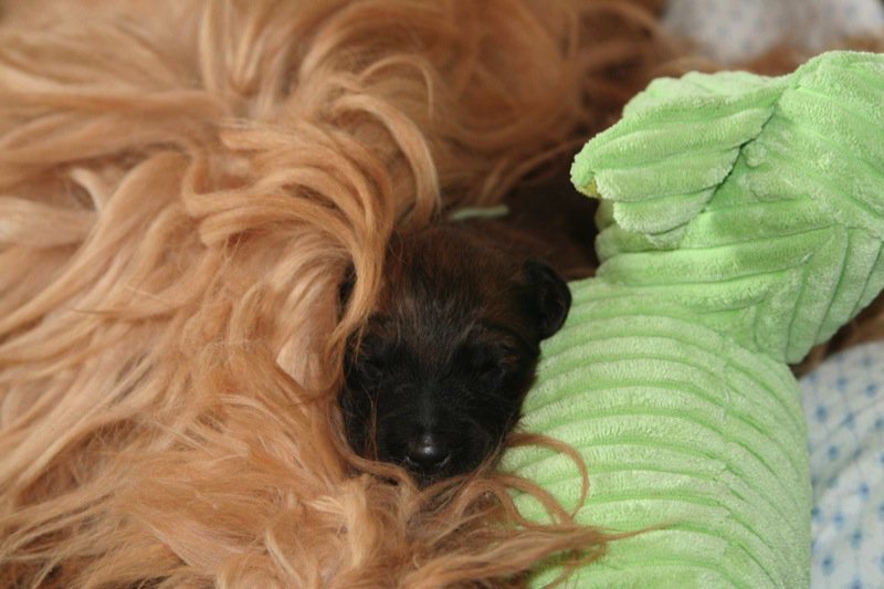 Mara ist doch sehr erstaunt über ihre aktiven Hexlein und flüchtet bei 'Aktionalarm' schon mal für ein paar Minuten vor ihre Wurfhöhle. Erst wenn sich alles beruhigt hat, lugt sie vorsichtig in die Höhle und legt sich zu ihren Kindern. Von ihr haben sie das Temperament sicher nicht, da muss sich Papa Poupon deutlich durchgesetzt haben.