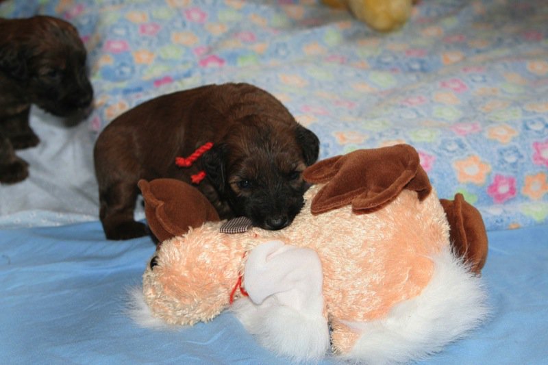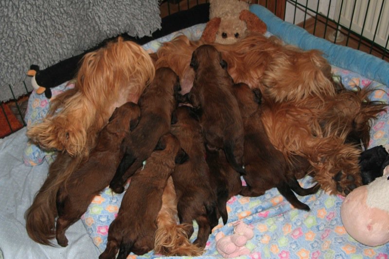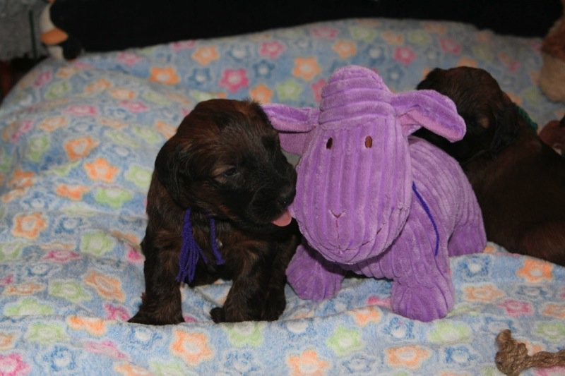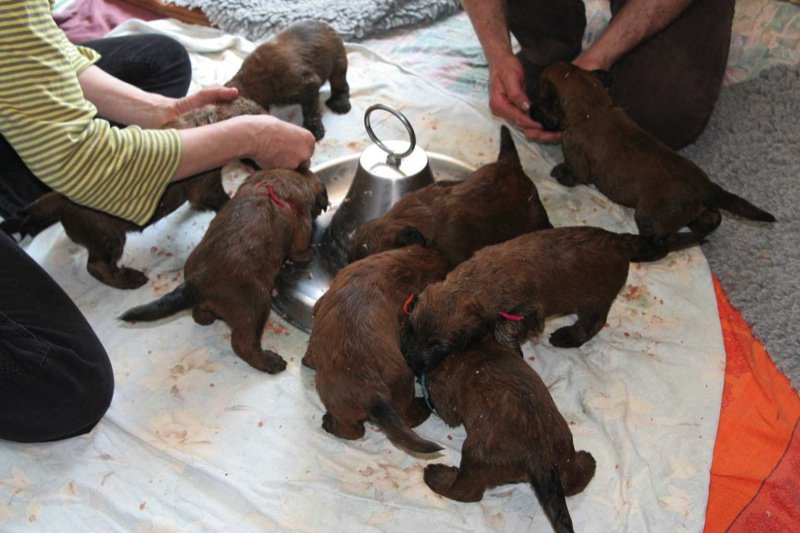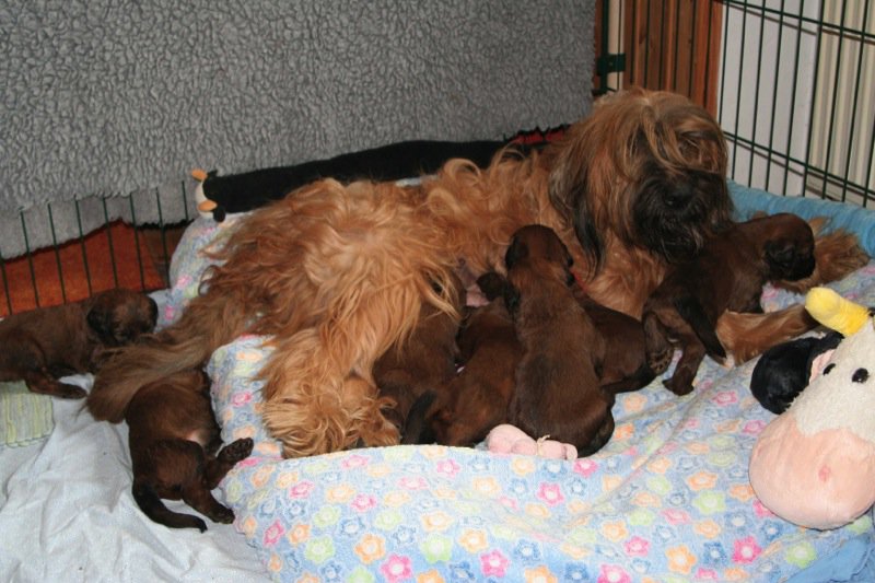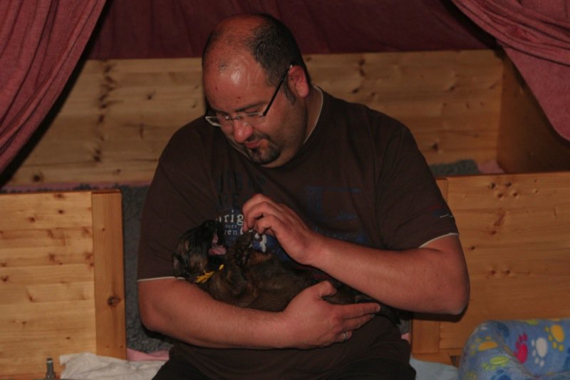 Sie bellen wenn sie Geräusche hören, rasen davon wenn ihnen etwas unheimlich ist, kommen neugierig wieder, stürzen sich recht manierlich aufs Futter, weniger manierlich auf die Zitzen, beißen mit dem 'bisschen' Zähne in unsere Zehen, kreischen wenn sie nicht auf den Arm wollen und schlafen zuckersüß dann doch auf unserem Arm ein.