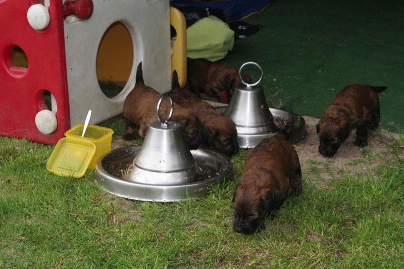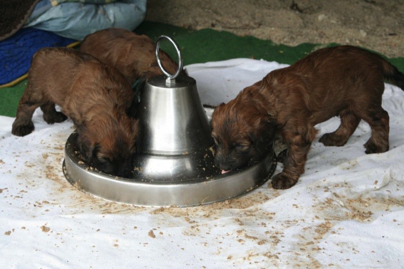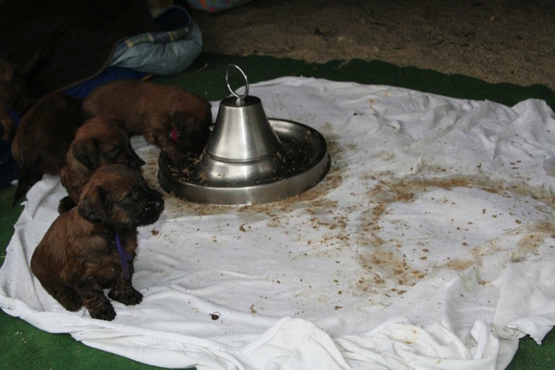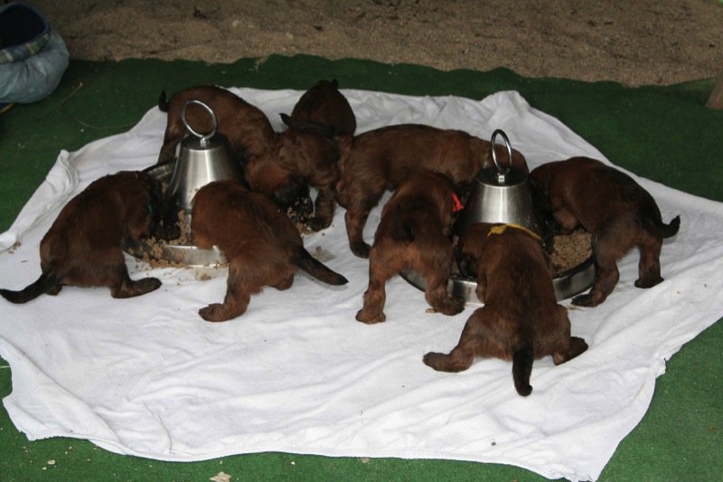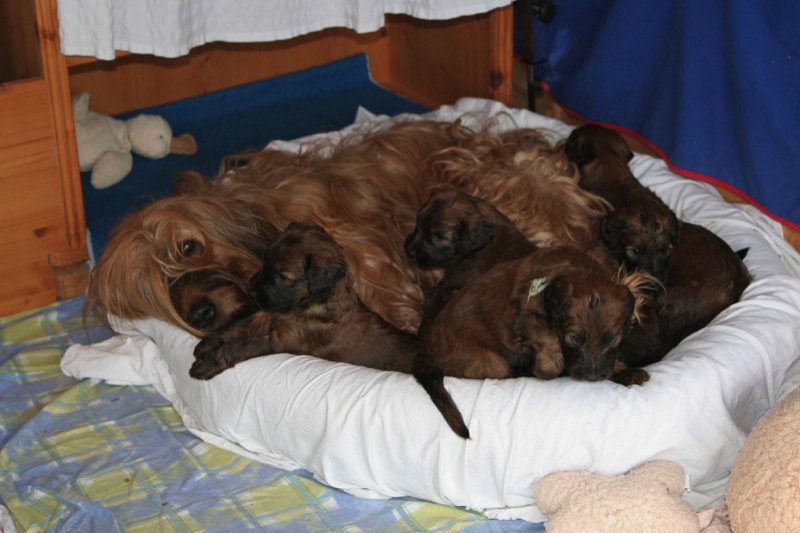 Oma Inschi ist dann mit ins Welpenhaus gezogen. Kurzerhand hat sie Milch 'produziert' und säugt nun hingebungsvoll 'ihre' Welpen. Mara ist es nur recht dass sie die Quälgeister in Inschis Obhut geben kann. Ab und an kommt sie vorbei, schaut ob alles in Ordnung ist, säugt ein wenig und geht zufrieden wieder von dannen. So eine Oma ist doch unbezahlbar.