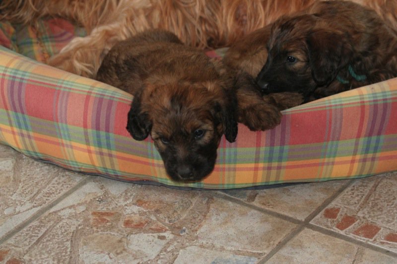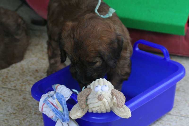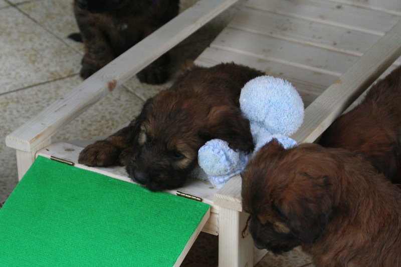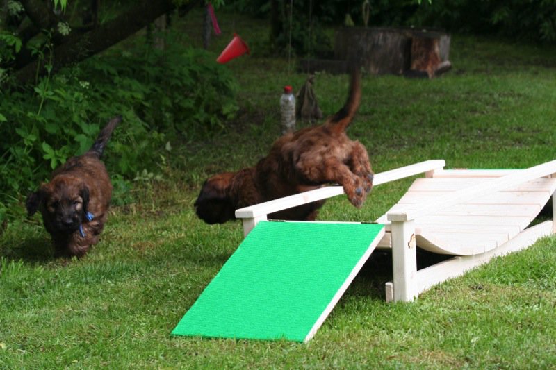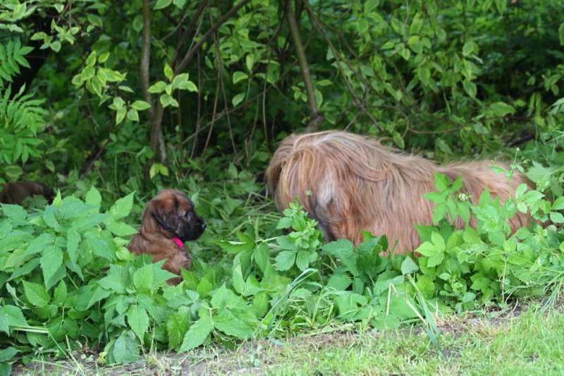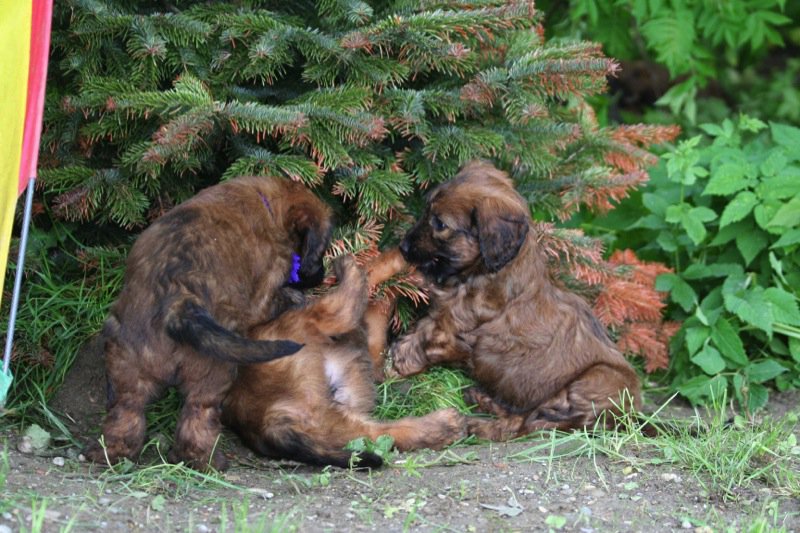 Den Hexlein sind diese Sorgen fremd. Sie toben ungeachtet meiner Fotografierwünsche durch ihren Dschungel und es ist ihnen total egal, dass sie nass nicht sehr fotogen sind. Sie stört der Regen auch nicht wirklich, haben sie doch unsere Wohnküche, ihren überdachten Außenbereich, den fast wasserdichten Dschungel und ihre 'Villa' zum toben. Und das tun sie ausgiebig. Herumtollen bis zum Umfallen ... von Mara haben sie dieses Temperament bestimmt nicht. Glücklicherweise essen sie mittlerweile gesittet, dafür beißen sie nun genüsslich in unsere Waden. Da helfen nur die 'Briefträgerknochen' um sie zufrieden zu stellen.