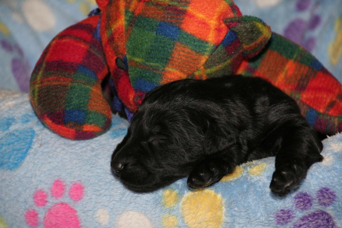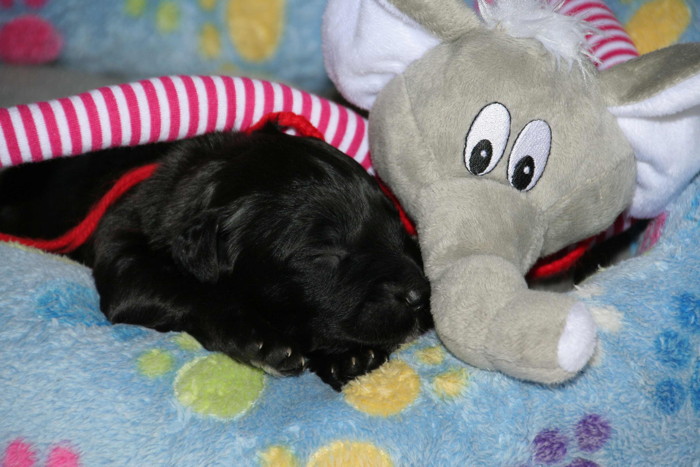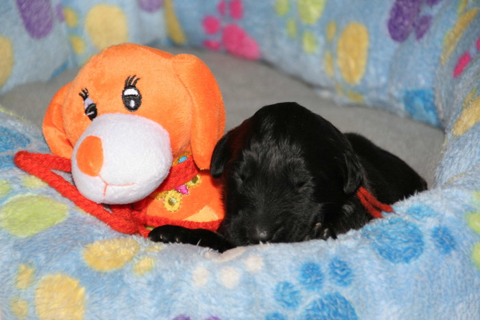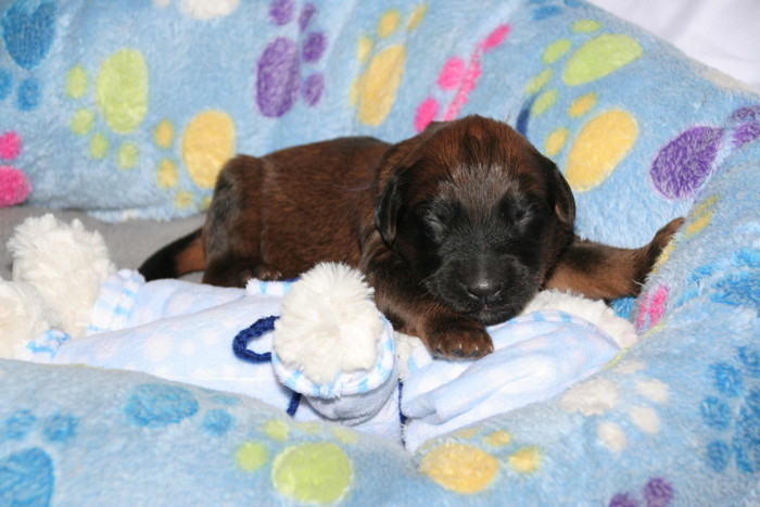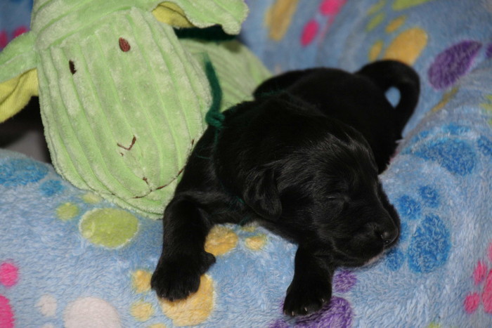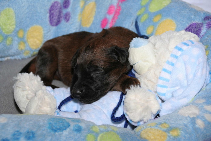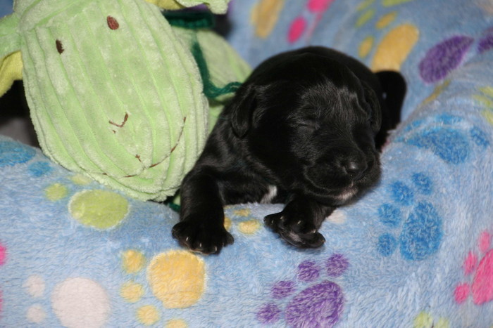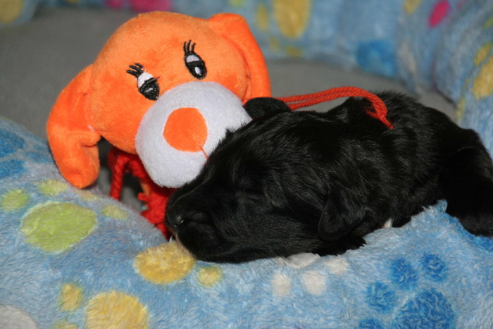 Die erste Woche ist rum ... alle sind gesund und munter und ähneln eher kleinen Rollmöpsen als das man sie als Briardhexlein erkennt. Mit ca. 1kg Gewicht sind sie durchaus propper!