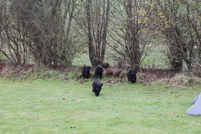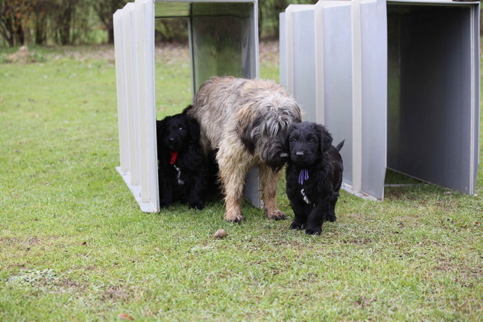 Ganz mutig sind sie auch mit Mama Mara, Tante Troll, 'Oberwichtig' Cobold und 'Unnahbar' Onawa und natürlich mit mir, dem Paparazzo Elke, mit auf den Hundeplatz gelaufen. Und sie haben so viel Spass gehabt. Fröhlich sind sie umeinander getollt, haben, zu meinem Entsetzen, versucht sie THS Geräte zu erklettern, sind im Gestrüpp verschwunden und haben Cobold und Onawa geärgert. Ein toller Ausflug. Müde und hungrig sind sie mit mir in ihr Gehege gelaufen, haben sich aufs Fressen gestürzt und sind dann in ihr warmes Häuschen verschwunden. Jetzt träumen sie von all den Abenteuern. Und ich geniesse eine Kuscheleinheit mit zufriedenen, satten, und schmusigen Hexlein.