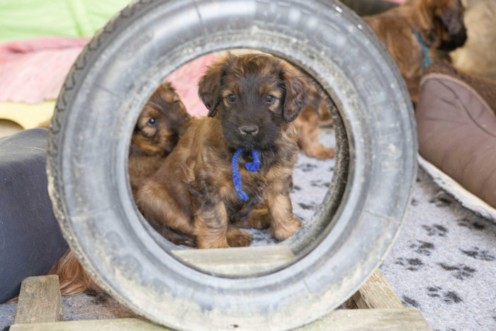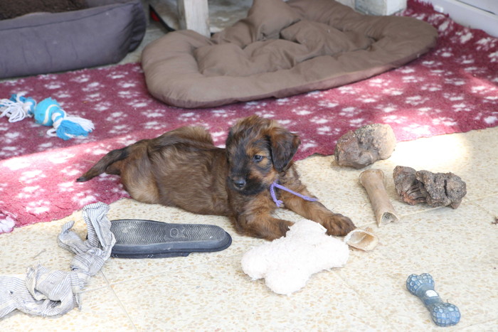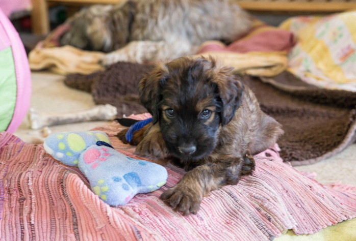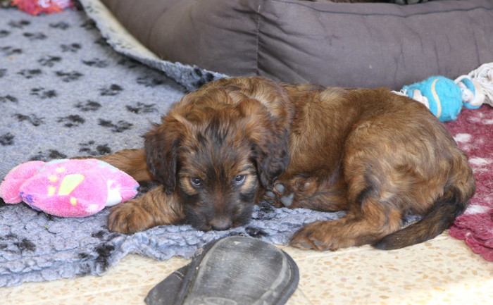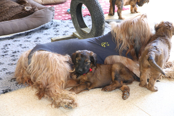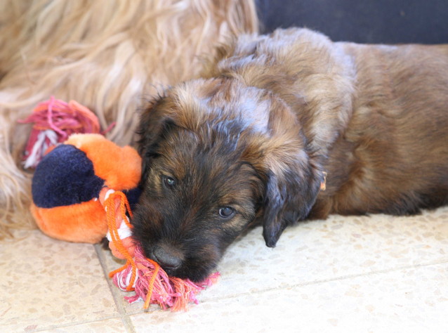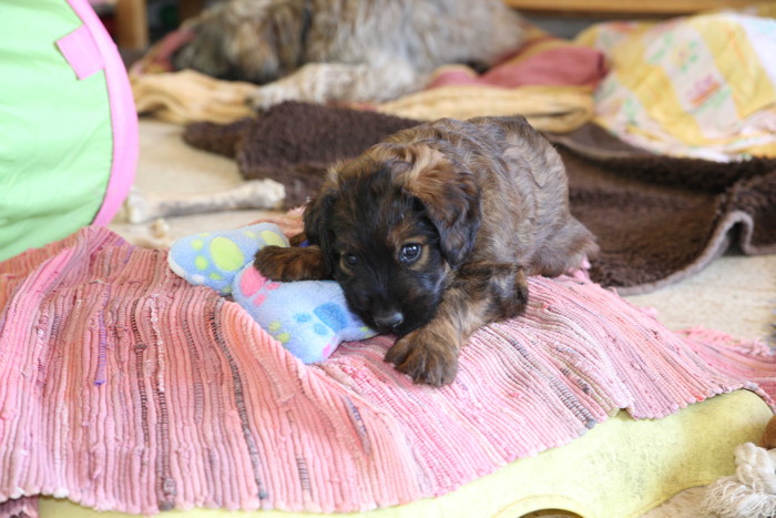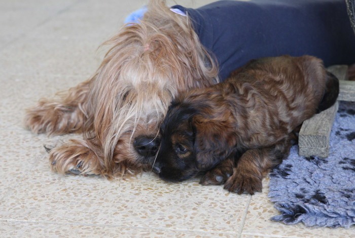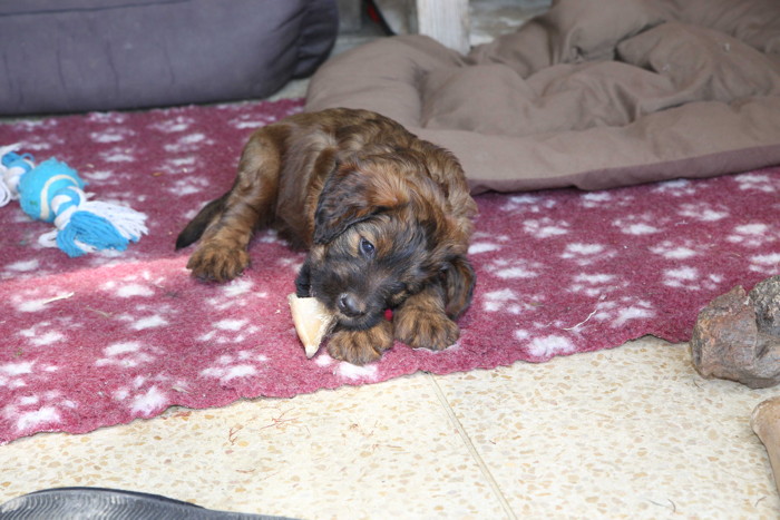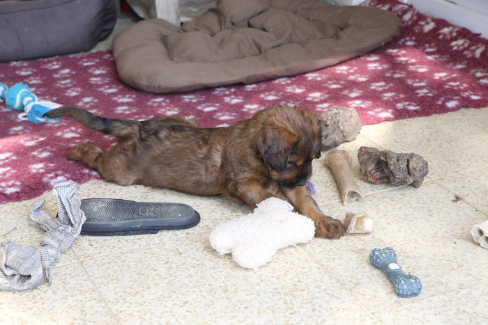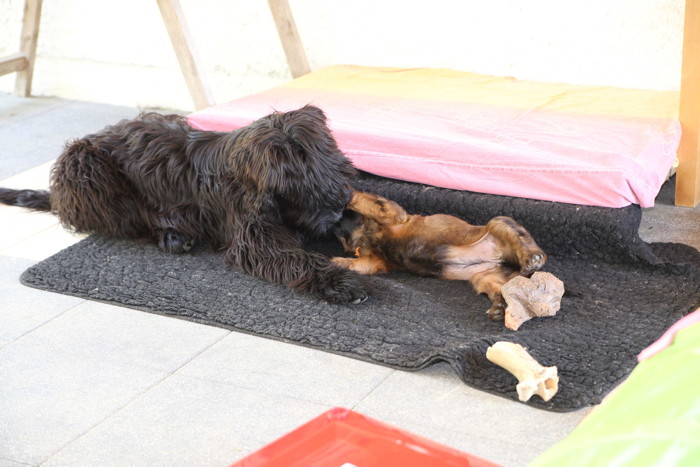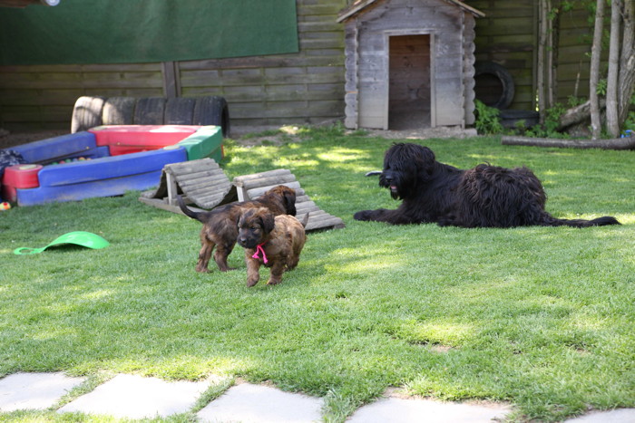 Unsere 'Nannis' Mimi und Troll haben jetzt große Mühe die Hexenbande im Zaum zu halten. Manchmal hilft nur noch die Flucht nach draußen, was von unseren Hexlein lautstark kommentiert wird. Fliehen ist feige! Aber nach kurzer Atempause liegen und toben sie wieder gemeinsam herum.