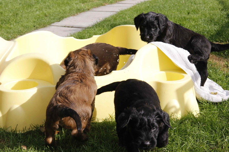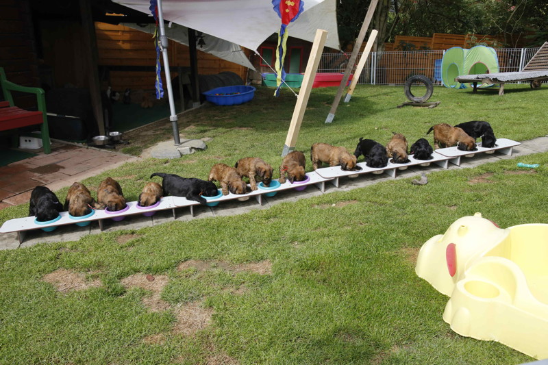 Unser Rudel geht nun ein und aus und hilft Mimi und Mara die ganze Schar zu bändigen. Uroma Inschi schaut nun mehr von aussen zu, jetzt sind ihr die Hexlein in geballter Form doch zu anstrengend. Jetzt entwickelt sich so langsam bei den Hexlein deutliche Vorlieben und Verhaltensweisen und wir sind gespannt wie sie sich weiter entwickeln.