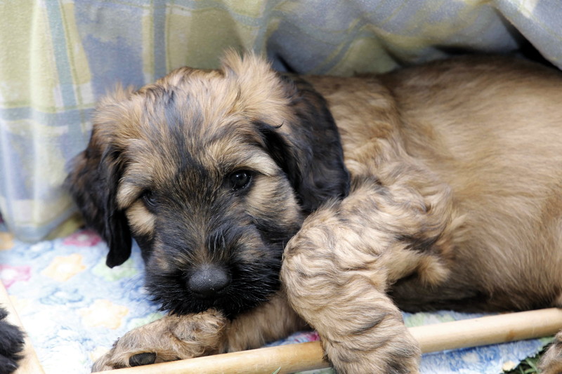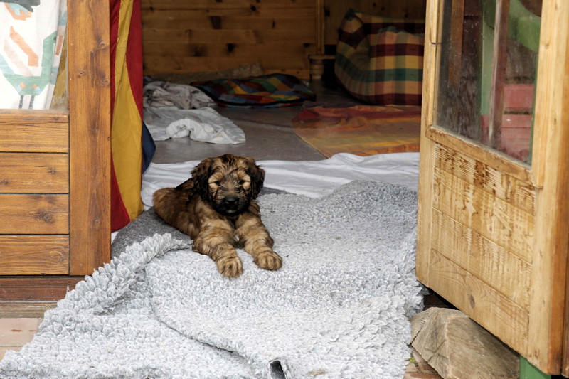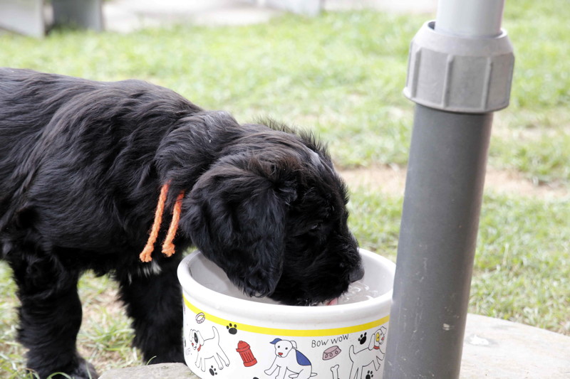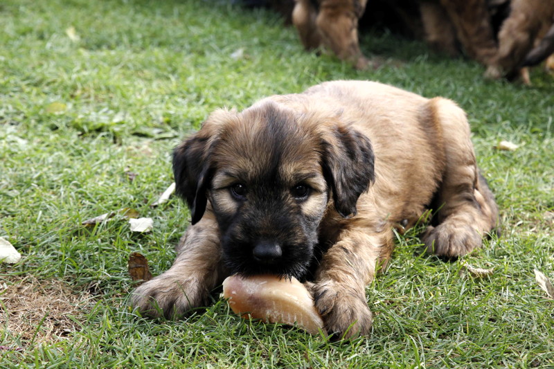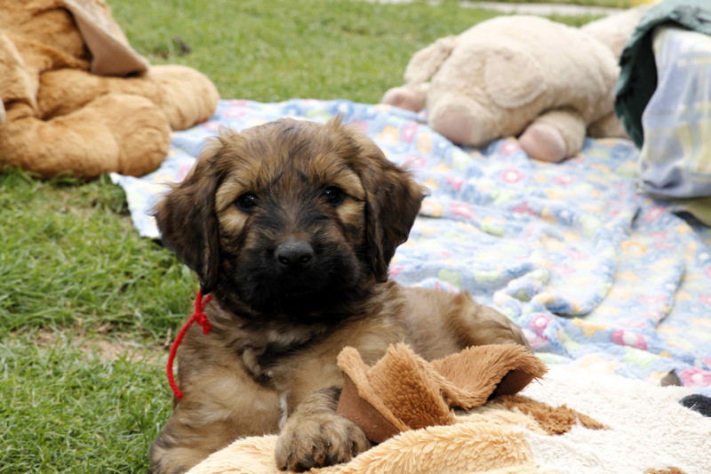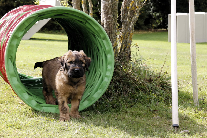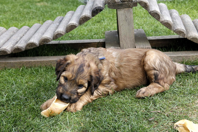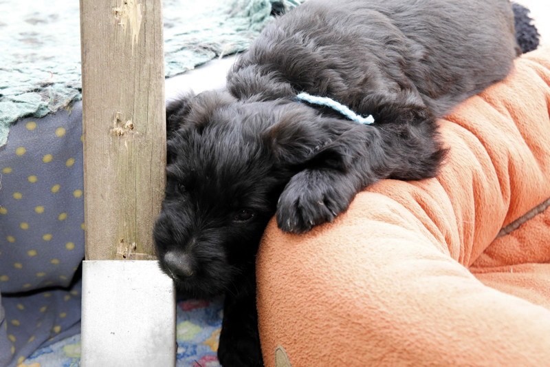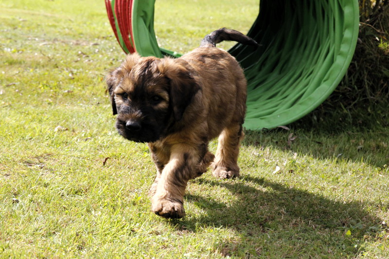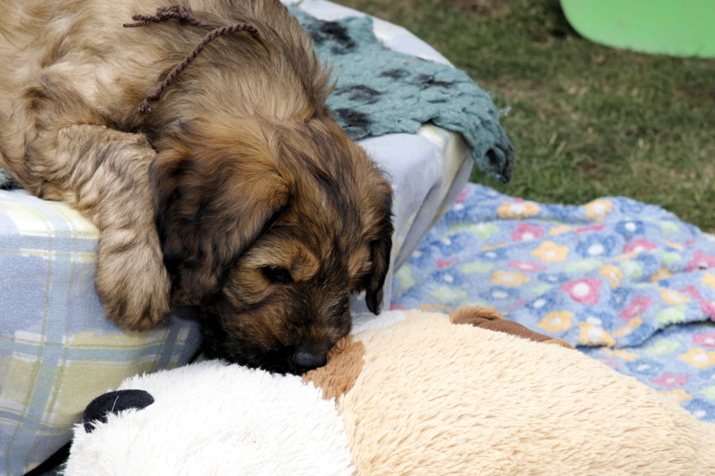 Sie sind schon richtig gut im Manipulieren von Menschen (Kopf schiefhalten und schon lächeln sie), im Ausbrechen (so eine Welpenabsperrung ist doch easy zu überklettern), im Tonhalten (man muss nur langanhaltend Heulen dann kommen die Züchter angerannt), im Schmusen (sie sind ja soooo niedlich), im Waldroden (Essigbäume sind nur der Anfang in unserer Baumfällkarriere), im Graben (sie wollen alle später mal Höhlenforscher werden und graben sich schon mal ins Thema ein), im Angriff (gemeinsam stürzen wir uns bellend auf gefährliche Dinge wie herabfallende 'Riesenblätter'), im Napfleeren (schliesslich wollen wir kugelrund zu den neuen Besitzern kommen).