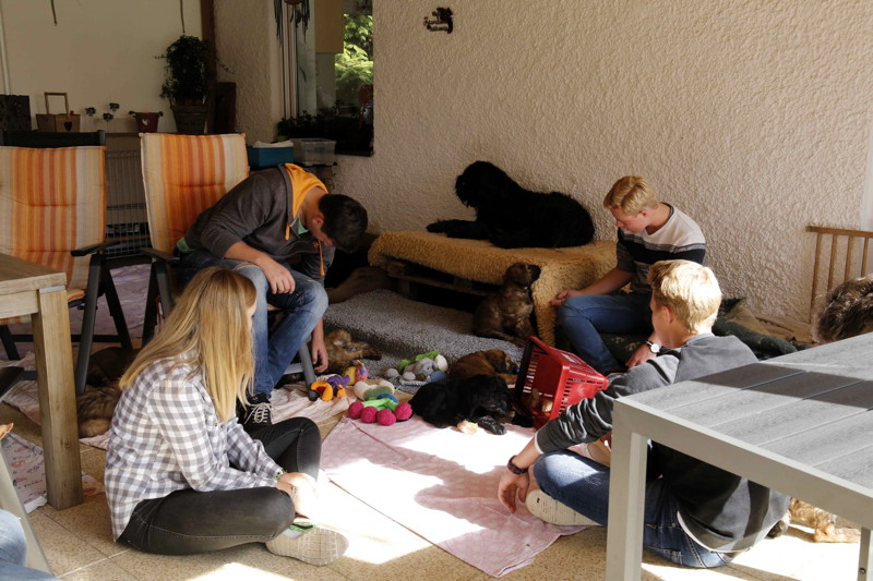 Aber natürlich lernen sie auch wirklich wichtige Dinge wie: nicht in die Hosenbeine beissen, Frust aushalten, Autofahren, Menschhände vorsichtig anzuknabbern, Ein NEIN ist verbindlich , Kuscheln auch , Spazierengehen ... und so teilen wir die Lernphasen in für sie und für uns wichtige Themen auf.