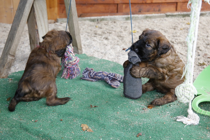 So viel ist passiert ... unsere Hexenkinder haben eine neue Welt entdeckt. Es gibt Menschen, die sind augenscheinlich nur zum Kuscheln, Benagen und Spielen da. Es gibt andere Hunde, ihr Rudel, und die sind ganz unterschiedlich. Mit einigen kann man spielen, andere sind 'Wichtig', andere sind nur lieb und wieder andere halten Abstand. Puhhh, viel zu lernen.