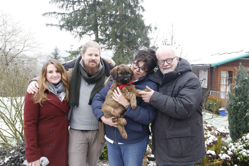 Nach einer noch turbulenten Woche mit Tierarztbesuch, Autofahrten, Besuch der Zuchtwartin, Spaziergängen in die weite Welt, sind sie reisefertig und unternehmungslustig in ihre neue Heimat gereist. Alle haben sich bereits super eingelebt und genießen den Luxus eines 'Einzelkindes'.