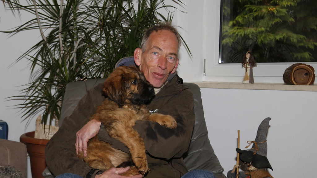 Rüde lachs, durfte zu Helga ziehen. Helgas Tochter Claudia lebt mit unserem Briardrüden