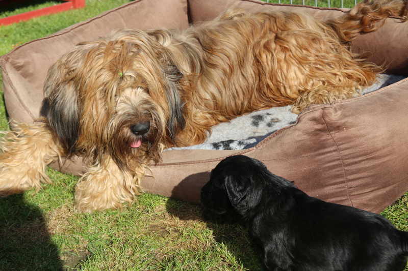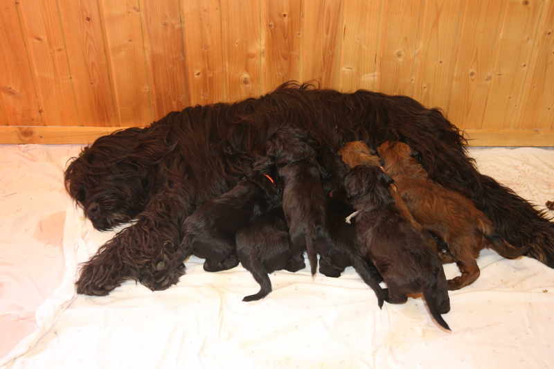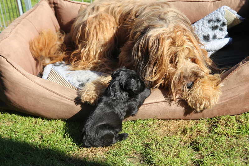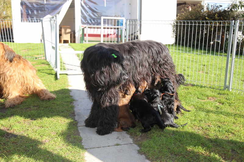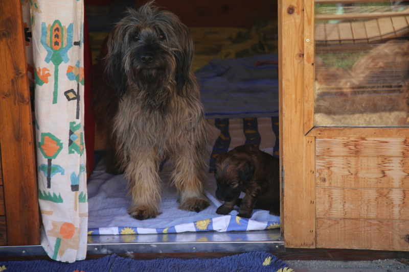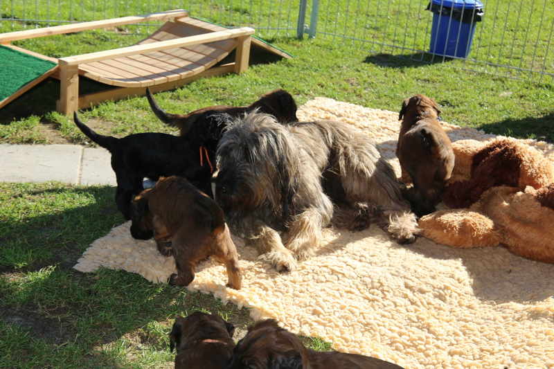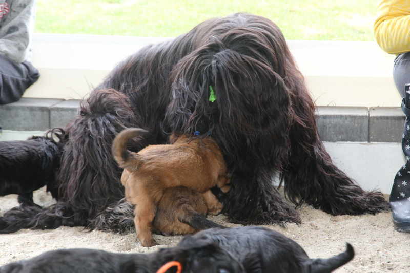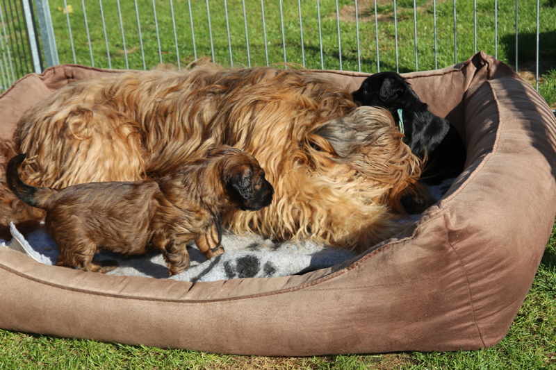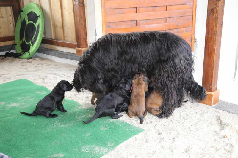 Mama Mimi ist mit dem Deal mehr als zufrieden ... schließlich hat Frau Hund Personal. Und so ist es für alle super: Oberguru Mimi beschaut sich als erste ganz wichtig die Besucher, säugt ihre Kinder und liegt ab und an hoheitsvoll bei ihnen.