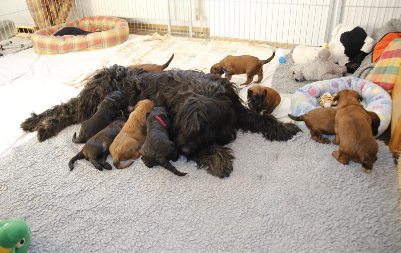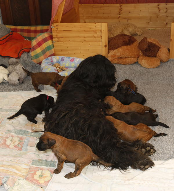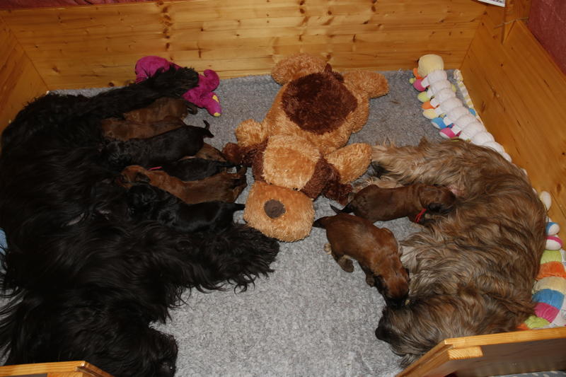 Jeden Morgen ist Familienkuscheln und Spielen mit den 'Z'orros angesagt. Dann wird es schon mal ein wenig enger in dem Welpenwohnzimmer, aber wir und unser Rudel genießen diese gemeinsame Zeit.