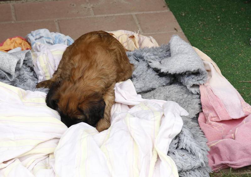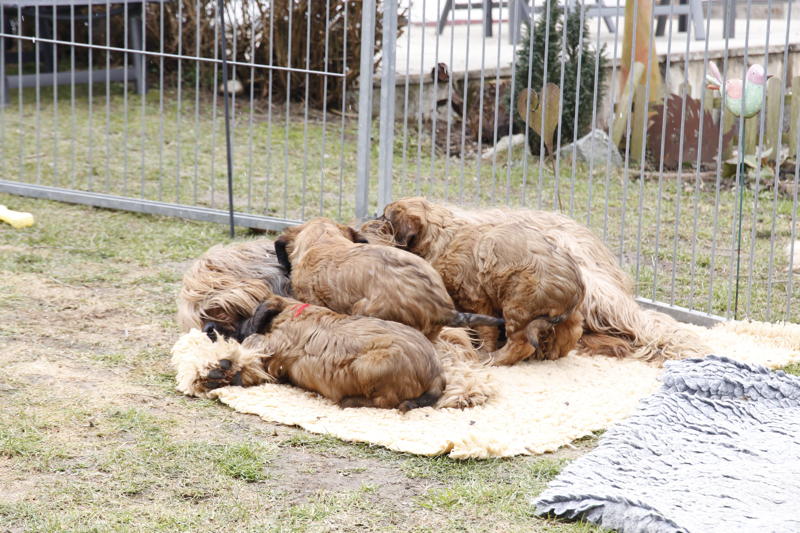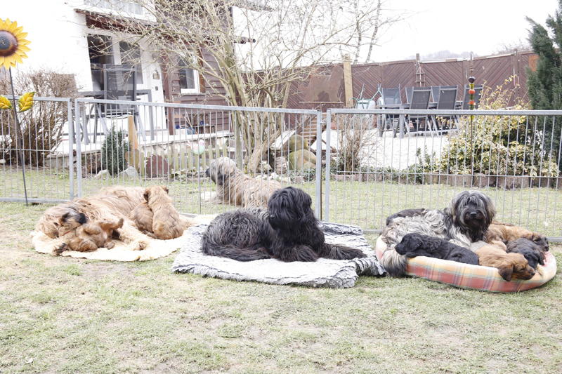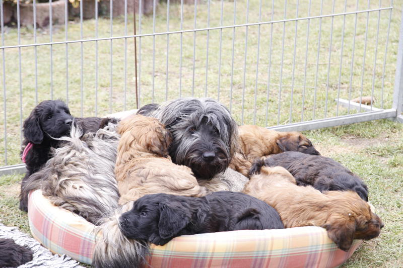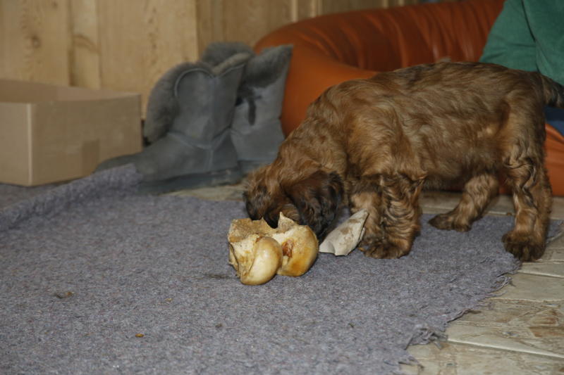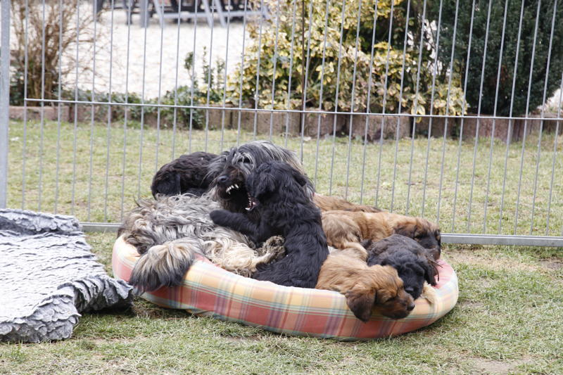 Die Besuche in unserer Wohnung sind der tägliche Highlight, sie tollen und toben umeinander, inspizieren Spülmaschine und Küchenschränke und finden eine Menschenwohnung ausnehmend spannend. Auch das sie sich genüsslich in die großen Hundebettchen reinkuscheln können, wenn eine kleine Schaffenspause angesagt ist.