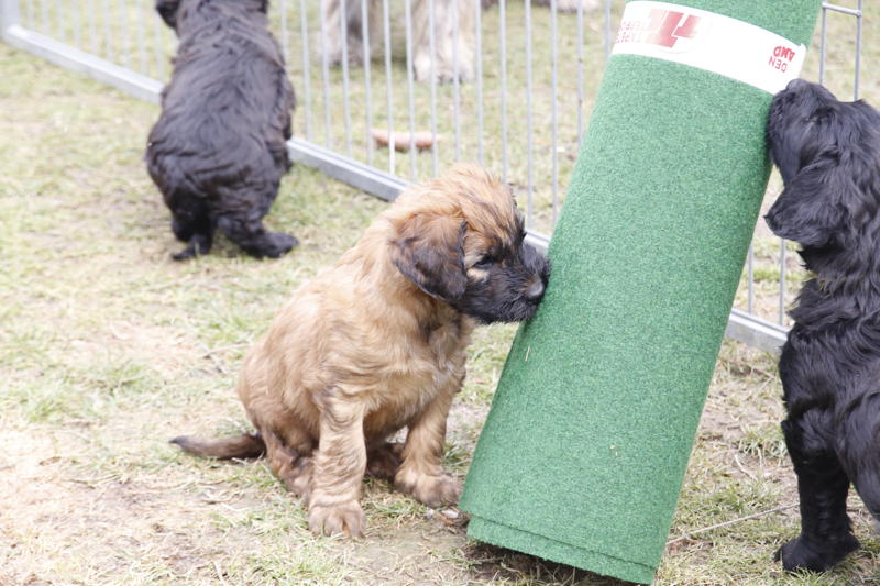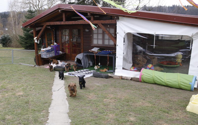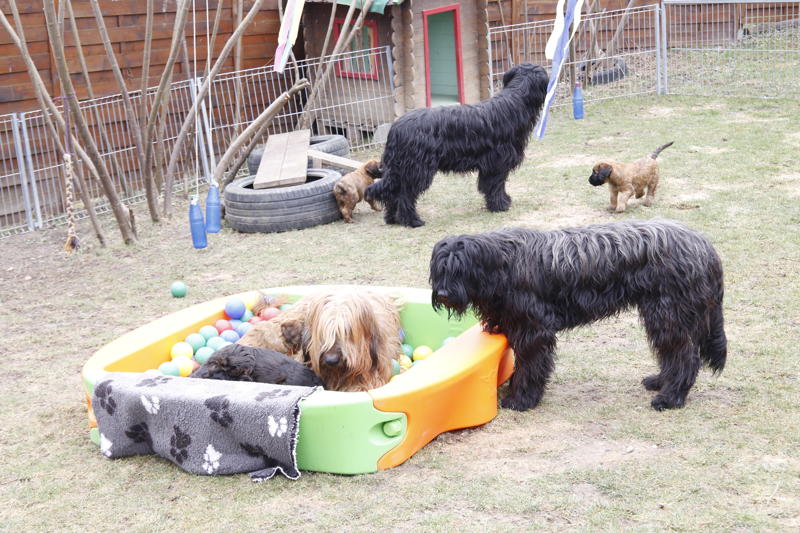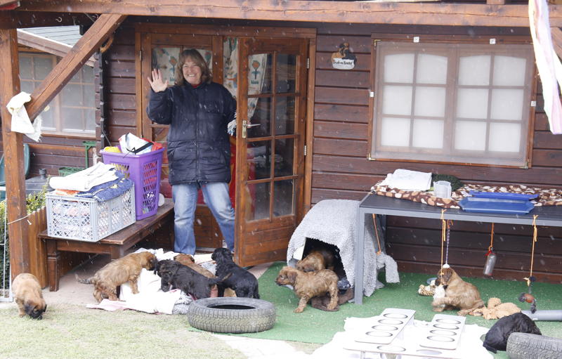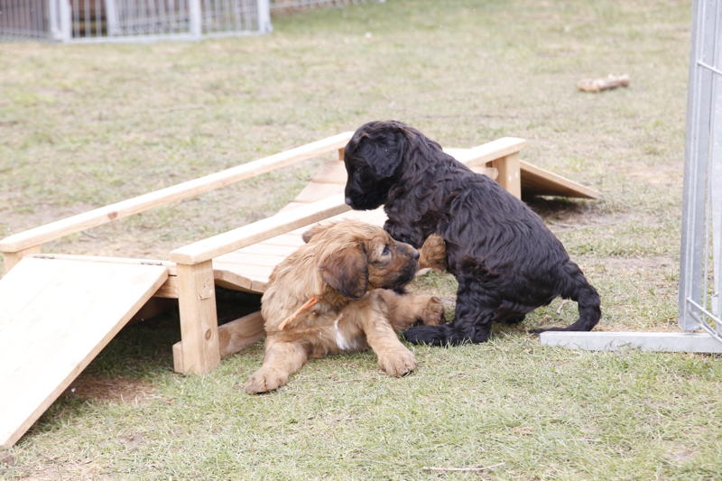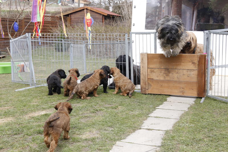 Auch ihre Aktivitäten untereinander werden heftiger und lauter, so dass unsere erwachsenen Hunde schon mal ein 'Machtwort' sprechen. Auch wir lassen uns das Hosenbeißen, das Anspringen, das heftige 'in die Hände tackern' und das Knurren am Napf nicht mehr gefallen und lehren sie sanfter und angemessener auf uns zu reagieren. Finden sie blöde ... aber muss sein!!!