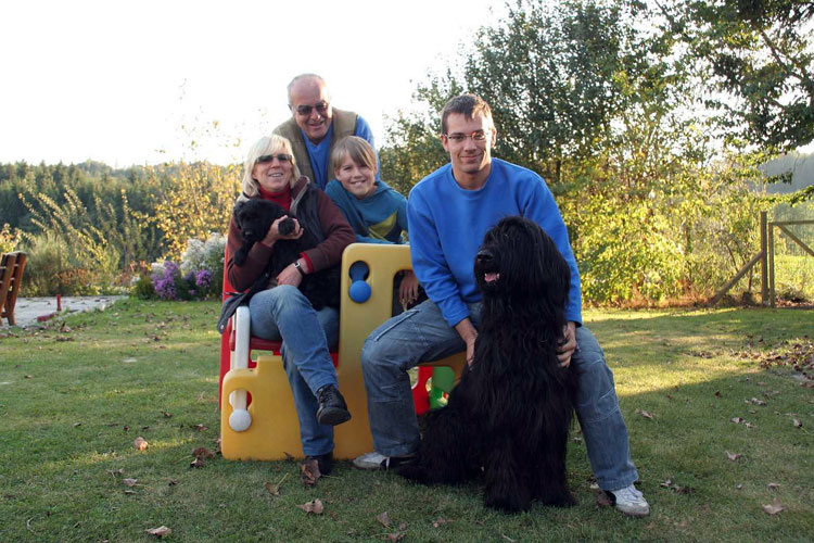 Othello tritt die Nachfolge eines Jack Russels an. Fam. Schmitt fällt es nach 12 Jahren Terrier Erfahrung sicherlich superleicht mit einem Briardrüden zu leben. Auch die Kids sind begeistert über ihren Schwarzen 'Orangenen', mit dem sie schon lange geliebäugelt hatten. Besonders Merle ist entzückt über ihr schwarzes 'Monsterchen'.