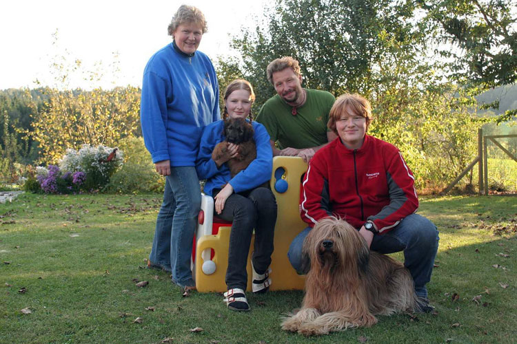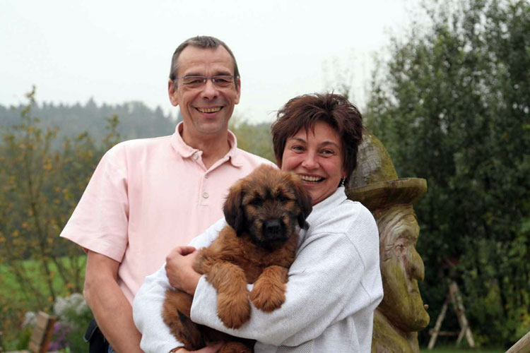 Orpheus Punker ist zu Familie Schmidt und Leeloo vom Hexenhof nach Altöttingen gezogen. Claudia und Peter wollten sich auch mal einen Briardrüden 'antun', womit Leeloo nur zähneknirschend einverstanden war. Mittlerweile haben sich alle, auch Leeloo, daran gewöhnt das der Tagesablauf von so einem 'Untier' geprägt wird.