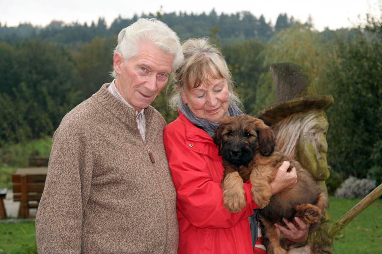 Orlando verhext das Zuhause von Fam. Lauth. Sabine hat vor einigen Jahren schon Briards gezüchtet und nach dem Tod ihrer Hunde musste wieder ein Briard ins Haus. Sie hat dann lange auf ihren ersehnten Hexenhofhund warten müssen. Der 'rote' Schwarze hatte es ihr schon früh angetan und so wird Orlando seine Karriere als Hexenhund in Lichtenfels starten. Sabine ist begeistert über seine Selbstständigkeit und seinen Eigensinn. Die beiden werden sich bestimmt supergut zusammenraufen.